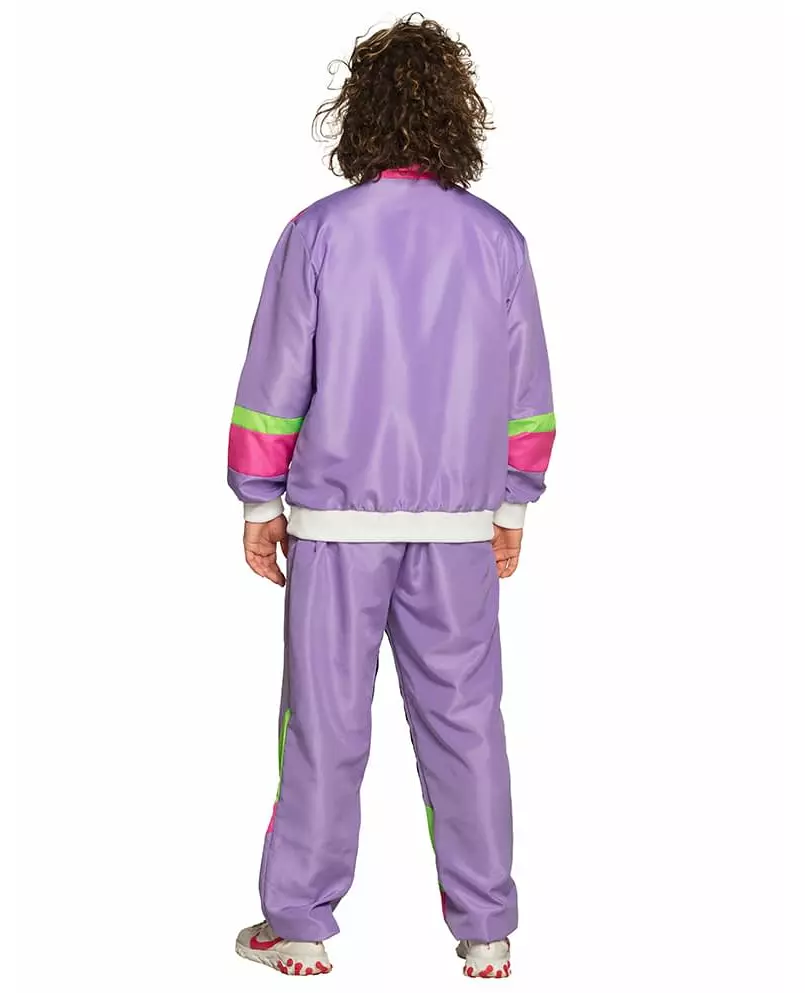 Adopt a retro look for your 80s party This retro costume for men consists of a jacket and pants. The jogging jacket is light purple, with wide green and pink stripes. It has fake pockets on the sides, and closes with a zip on the front. The pants match the jacket. They are also purple, with green and pink diagonal stripes on the bottom. This 80s outfit will be perfect for participating in Carnival or a kitsch themed party. Accessories included: Jacket Pants Material: 100% Polyester Care: Hand wash