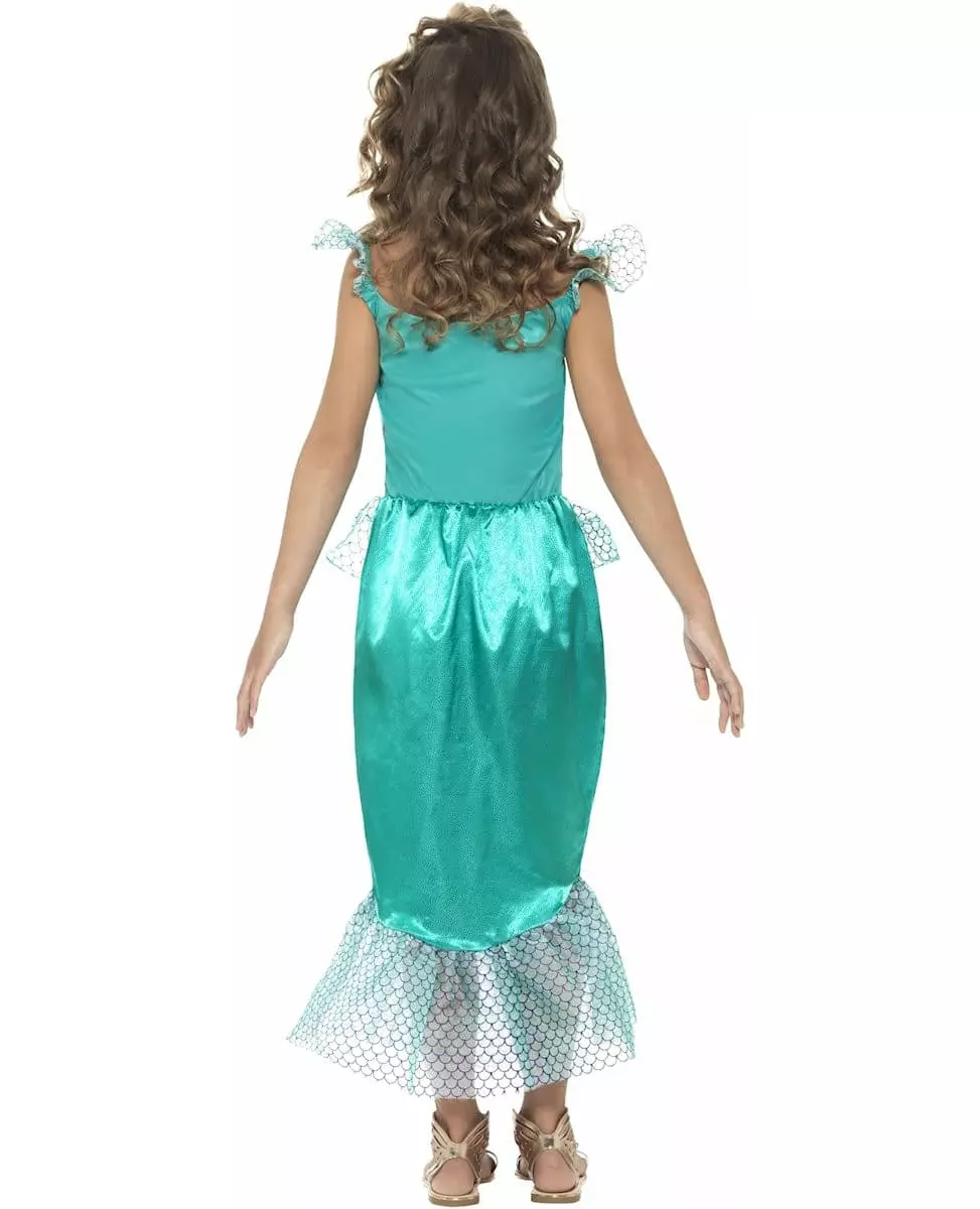 very pretty mermaid! This costume for girls consists of a dress and a hair clip (shoes not included). The dress is blue-green and purple in color. It has a fabric decorated with pretty scales on the sleeves, waist and bottom. A shell is present at the waist. Finally, the bottom of the dress is satin effect. A hair clip on which is placed a beautiful fabric shell will accessorize the dress. This mermaid set with scales will be perfect for your daughter during the Carnival! Accessories included: Dress Hair clip Material: 100% Polyester Care: Hand wash