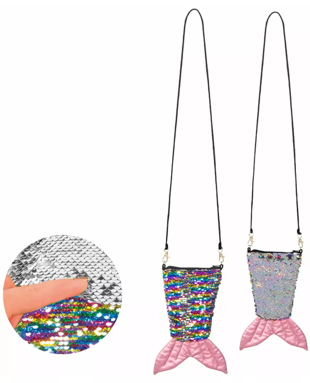 Mermaid tail bag with reversible rainbow and silver sequins zip for adults