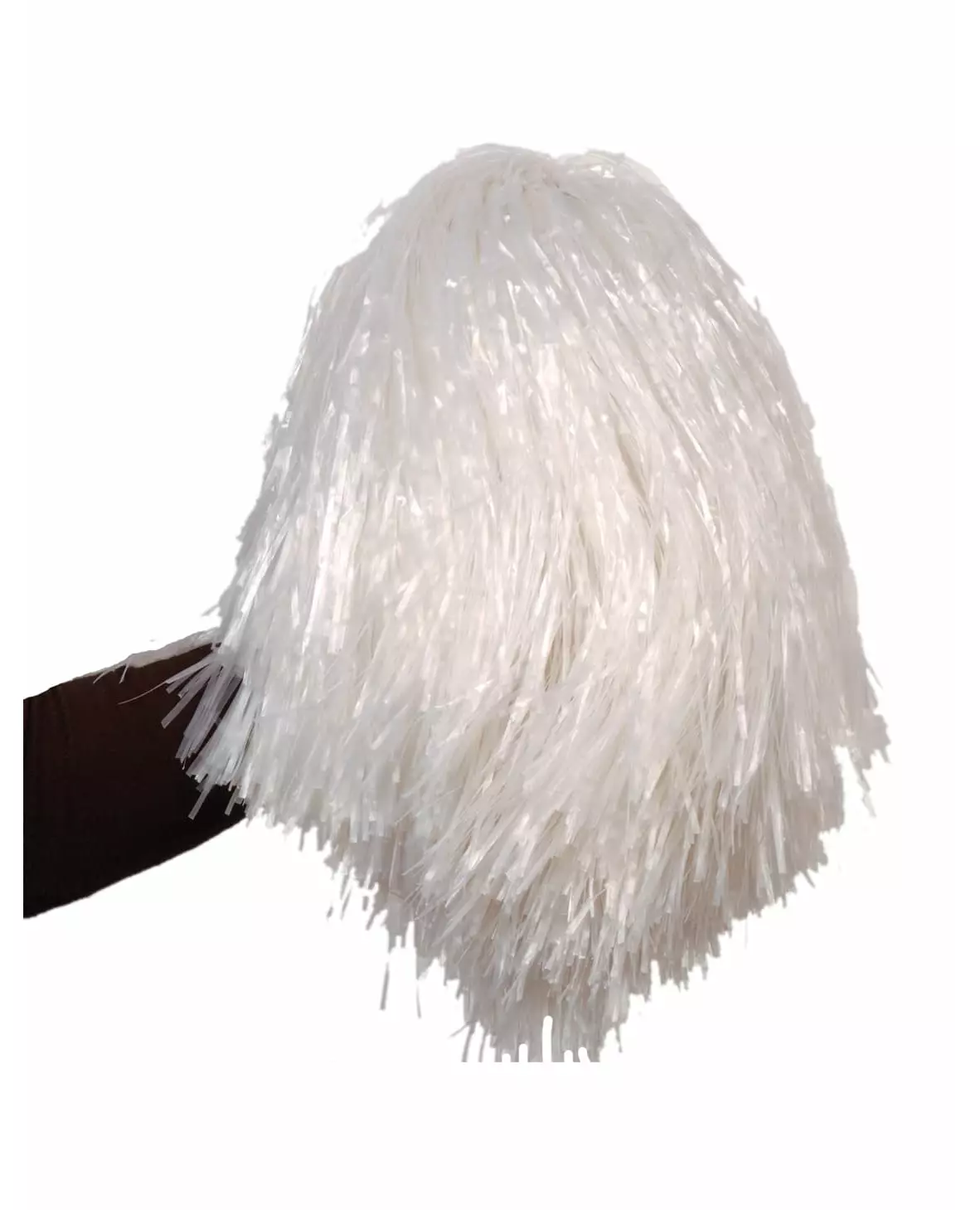 Wave your colors! This white cheerleader pompom measures approximately 35 cm in length. It has a black plastic handle. This accessory will perfectly complement a cheerleader costume during a parade or sporting events of all kinds. Accessories included: 1 pompom