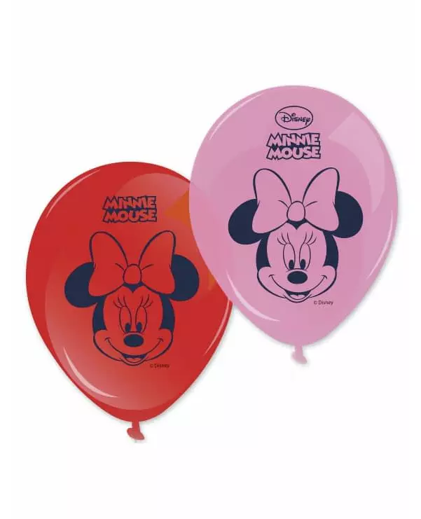 A party full of Minnie! This set of 8 balloons is officially licensed by Minnie™. Once inflated, they measure 28 cm. In this bag, you will find 4 red balloons and 4 pink ones. The balloons feature the face of the beautiful Minnie with the Minnie Mouse™ logo. Inflate these balloons for your daughter's Minnie™-themed birthday party. Accessories included: 8 Balloons Material: Latex