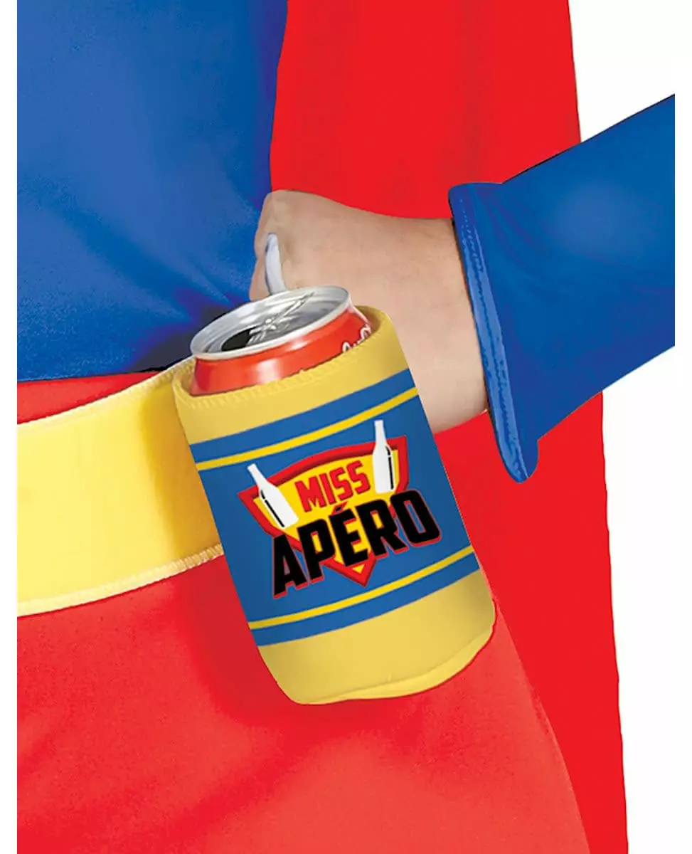 The superhero of the aperitif! This Miss Apéro costume for women includes a fitted dress in bright colors, a red cape, a yellow belt and a practical cup holder to keep your drinks close at hand. With its superhero-inspired design and its humorous "Miss Apéro" print, this outfit is ideal for bringing a fun and festive touch to your evenings. The flowing cape adds dynamism, while the practical belt perfectly completes this original look. Ideal for a costume party, a hen party or any event dedicated to good humor! Accessories included: 1 Dress 1 cape 1 cup holder 1 belt Material: 100% polyester Care: Hand wash