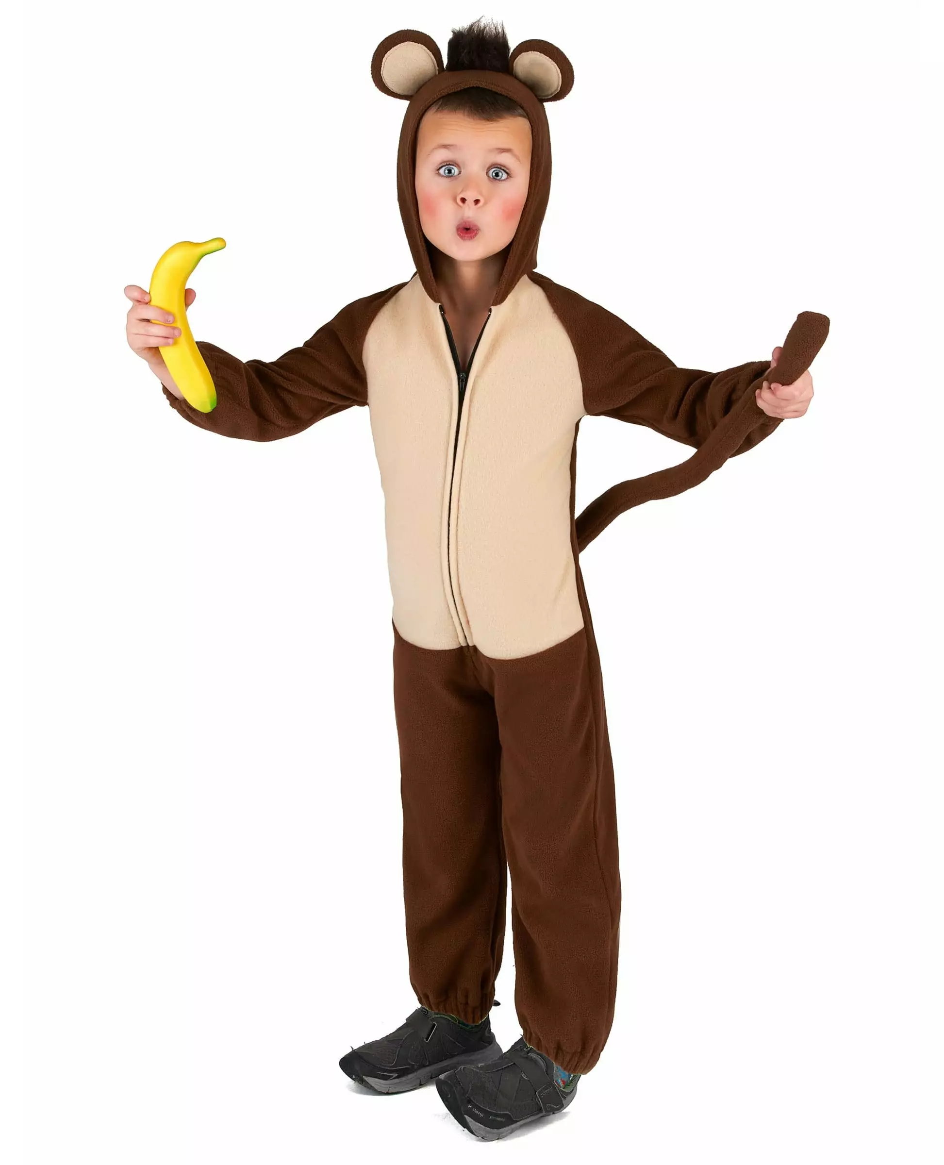 Monkeys are allowed! This monkey costume for children consists of a jumpsuit that zips up the front. The fabric is soft and feels like fleece. (Only the jumpsuit is included) A hood topped with round ears and a tuft of black synthetic fur completes this adorable outfit. Elasticated wrists and ankles allow you to create a puffy effect. The extra detail is the long tail with a metal frame that you can shape to your liking to complete your toddler's look. This prankster monkey costume will be ideal for your child's first Carnival or for a show! Accessories included: Jumpsuit Material: 100% Polyester Care: Hand washable