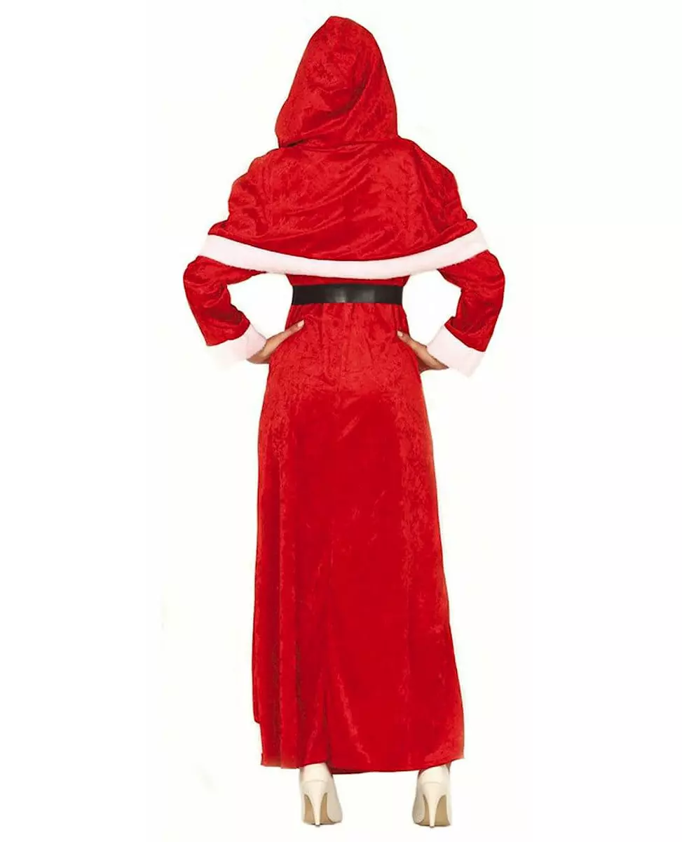 chic Christmas dress! This Santa costume is for women and consists of a dress, a cape, and a belt. The dress is long and has a velvet look. It is decorated with white borders in the center and at the wrists. The black belt with a gold buckle will perfectly complement the dress. The cape is red and decorated with a white border. It has the same velvet look as the dress. This Santa costume will be perfect for celebrating Christmas! Accessories included: Cape Dress Belt Material: 100% polyester Care: Hand wash