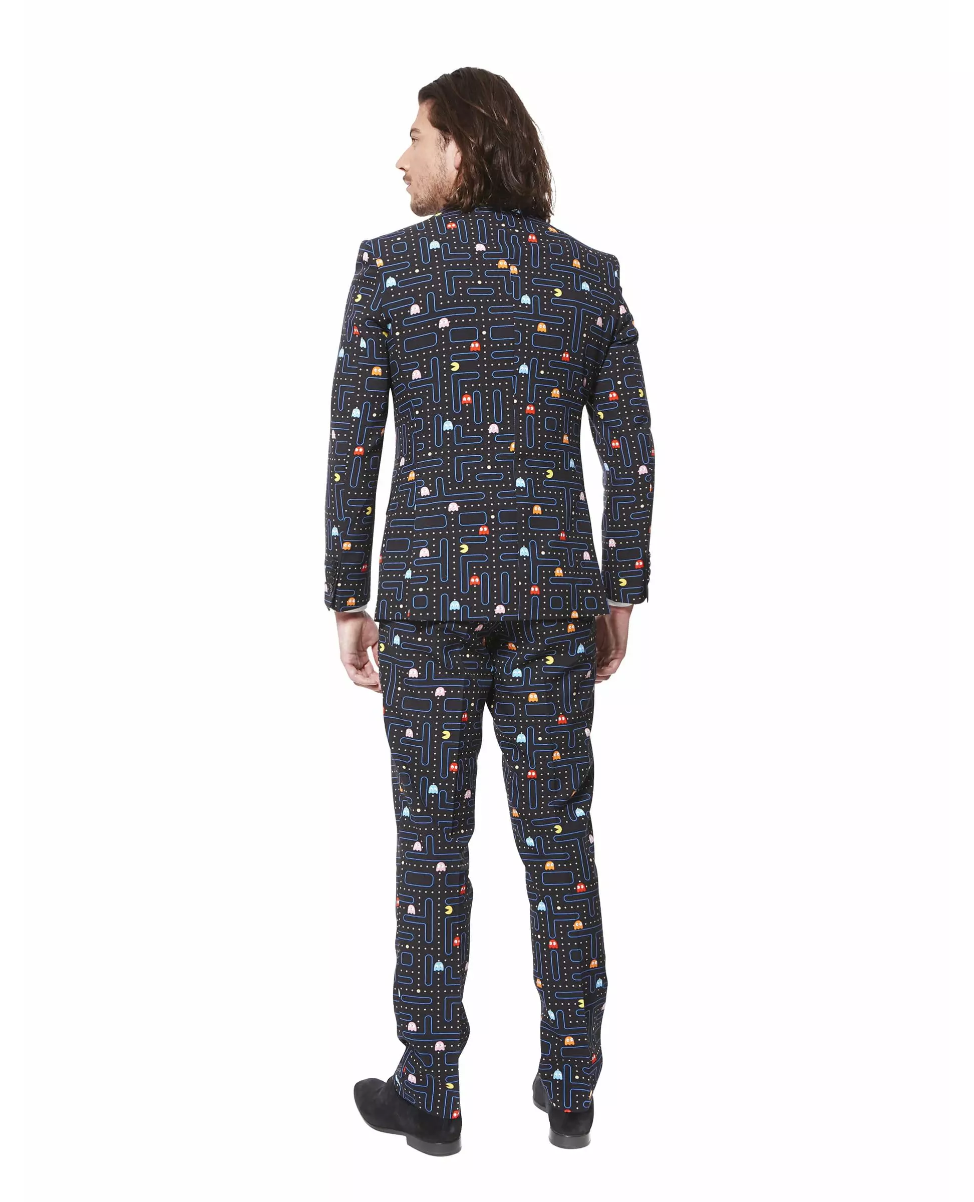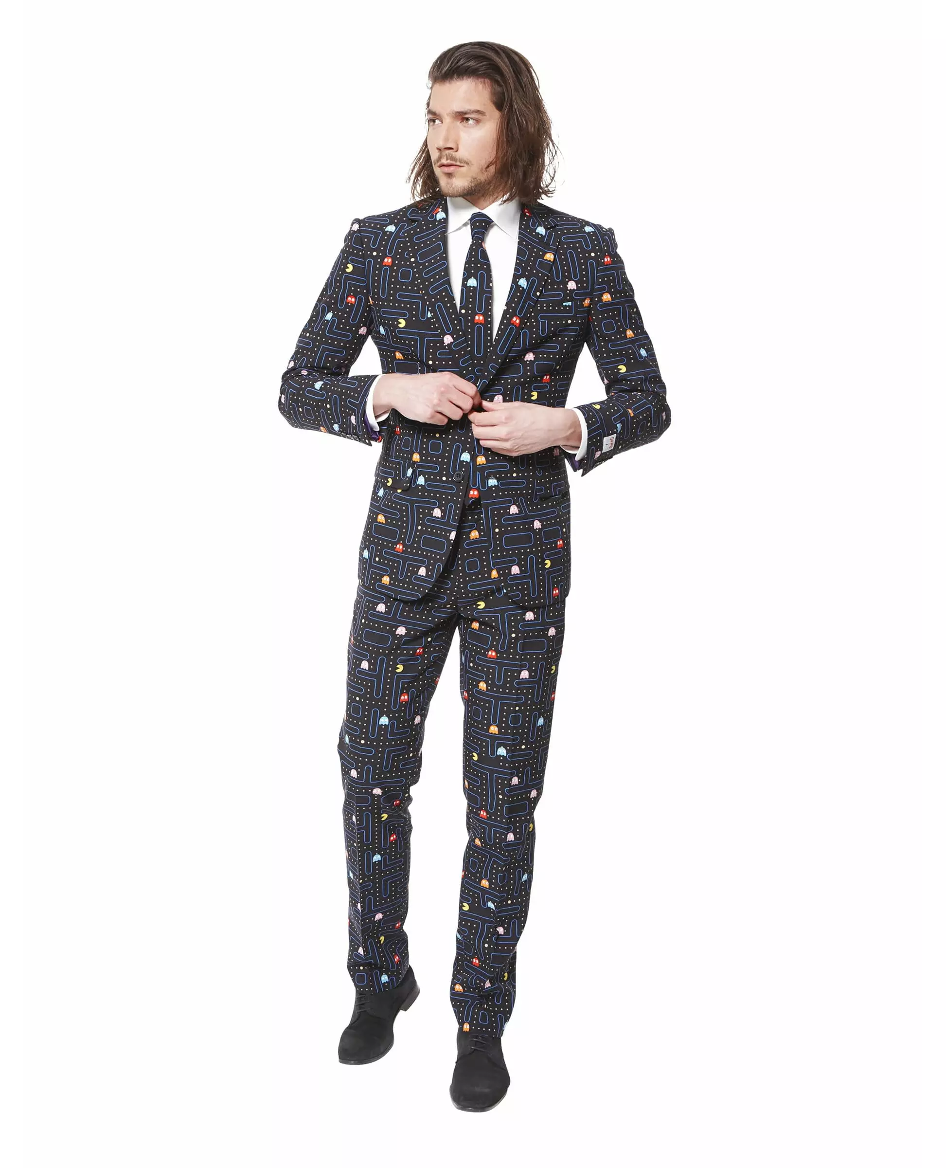 Back to the 80s! This Pac-Man costume from Opposuits is for men (white shirt and shoes not included). Mainly black in color, it is printed with Pac-Man with ghosts in red, blue, orange, and pink. Very good quality, it consists of a jacket, pants, and a tie. The jacket is lined with pockets inside, the pants close with a zipper and button, and finally the tie will tie around your neck. This set will be perfect for an 80s-themed cocktail party or any other occasion. Accessories included: Jacket Pants Tie Material: 100% polyester Care: Machine washable 30°