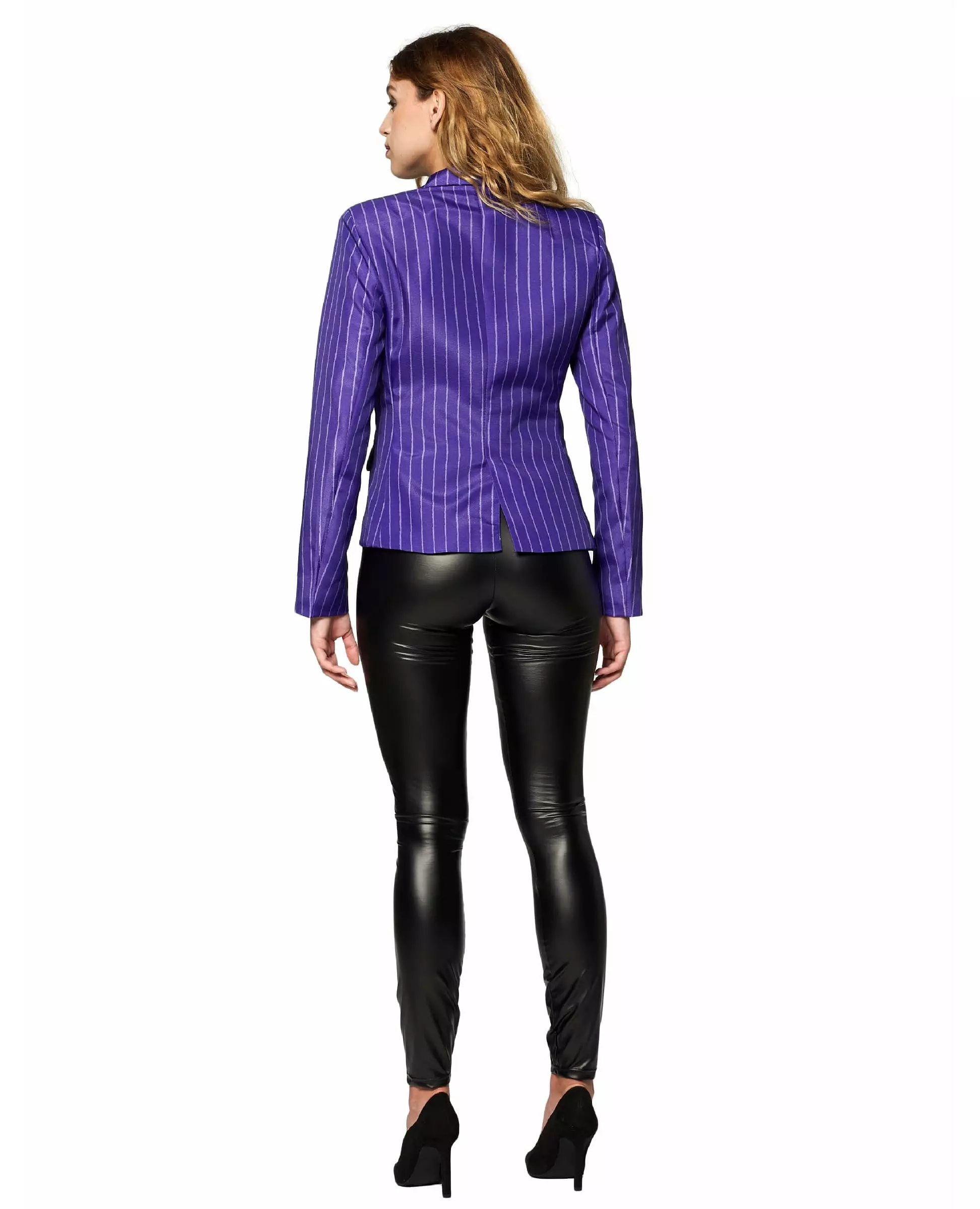 Be Batman's most stylish enemy with this officially licensed Suitmeister™ jacket! This officially licensed Suitmeister™ jacket is for women. Pants, shoes, shirt, and bow tie are not included. The jacket is purple with thin white stripes, a color reminiscent of the Joker character, Batman's worst enemy. The jacket is fitted and has buttons to close. Wear this jacket for a villain-themed party! Don't forget to bring your Batman! Accessories included - Jacket