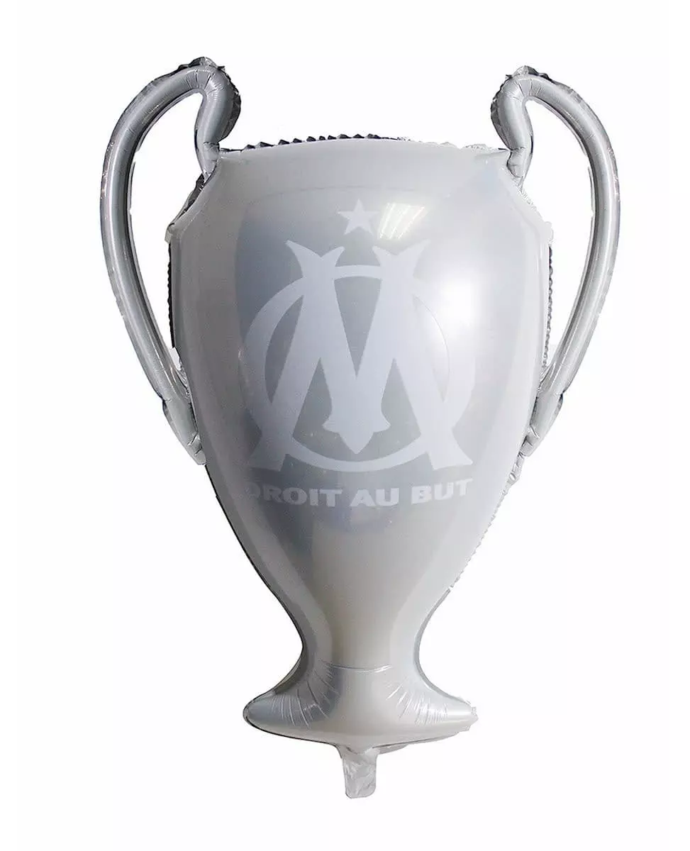 Your inflatable OM™ trophy! This aluminum ball is officially licensed by Olympique de Marseille. It measures approximately 65 cm when inflated and represents a gray football trophy of the OM team. This accessory will be ideal for supporting Olympique de Marseille during their next matches!. Accessories included: 1 Ball Material: Aluminum
