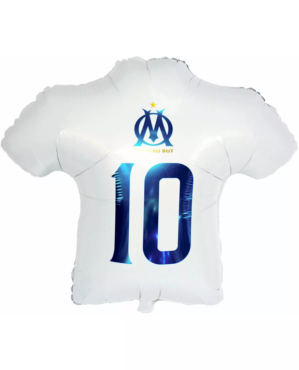 Your OM™ jersey to inflate! This aluminum ball is officially licensed by OM™. It represents the Olympique de Marseille jersey, it is white with the team's logo and slogan in metallic blue. Once inflated, it measures approximately 60 cm. This ball will be perfect for your favorite football team's next match!. Accessories included: 1 Ball Material: Aluminum