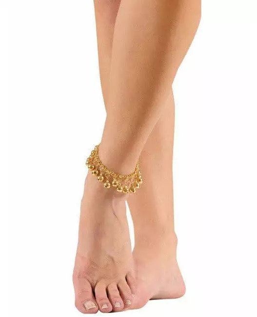 For oriental dancers This golden oriental anklet is made up of delicate bells. It adorns the ankles of the most beautiful belly dancers from the Orient. This anklet is ideal for an oriental-themed party or for carnival. Accessories included: ankle bracelet Material: 100% polyester Care: Hand washable