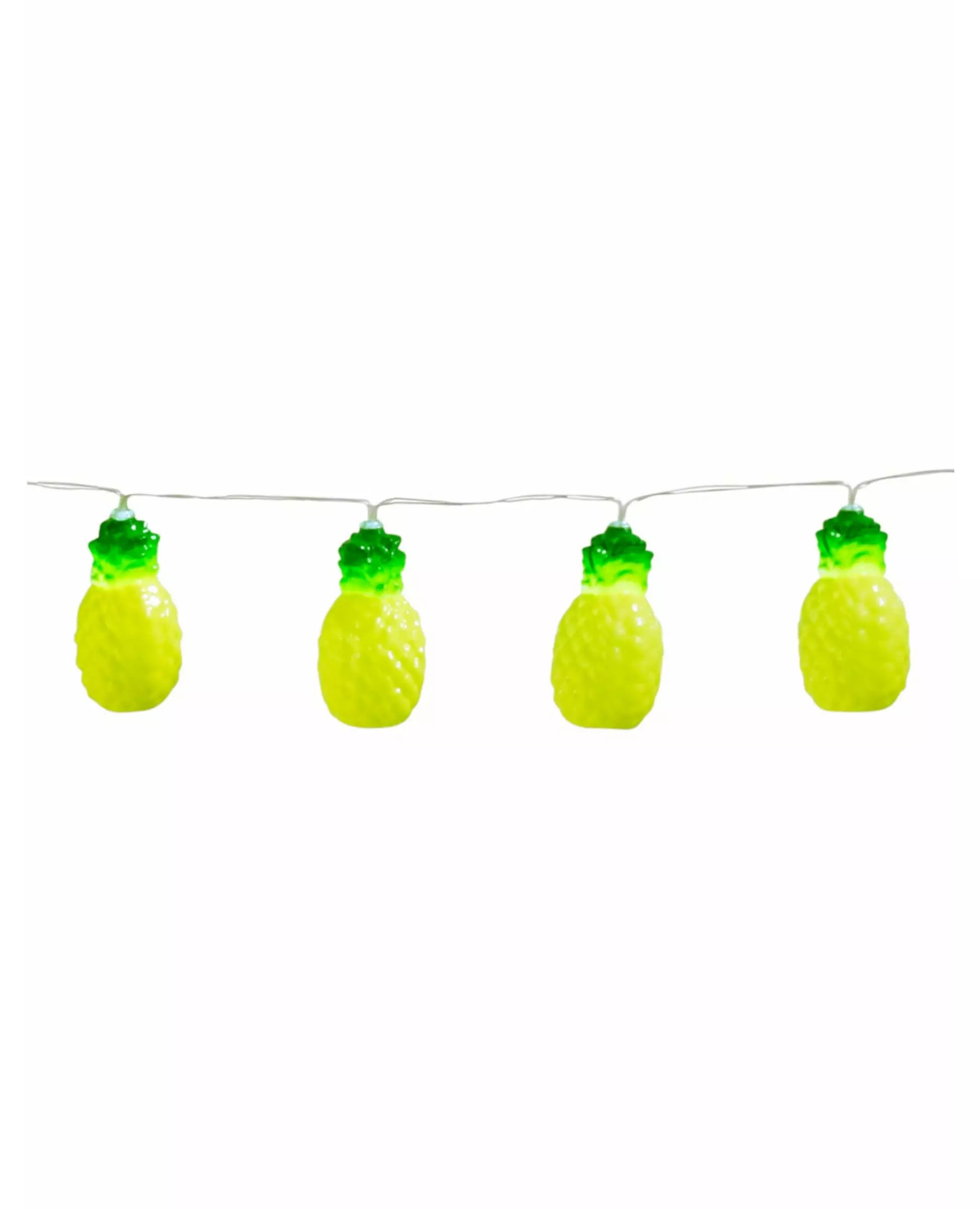 Bright fruits for a summer atmosphere! This light garland measures approximately 140 cm in length. Made up of small pineapples, it lights up using 2 AA batteries (not included). Create a fruity and bright atmosphere during a Hawaiian evening with this garland!. Accessories included: 1 Light garland