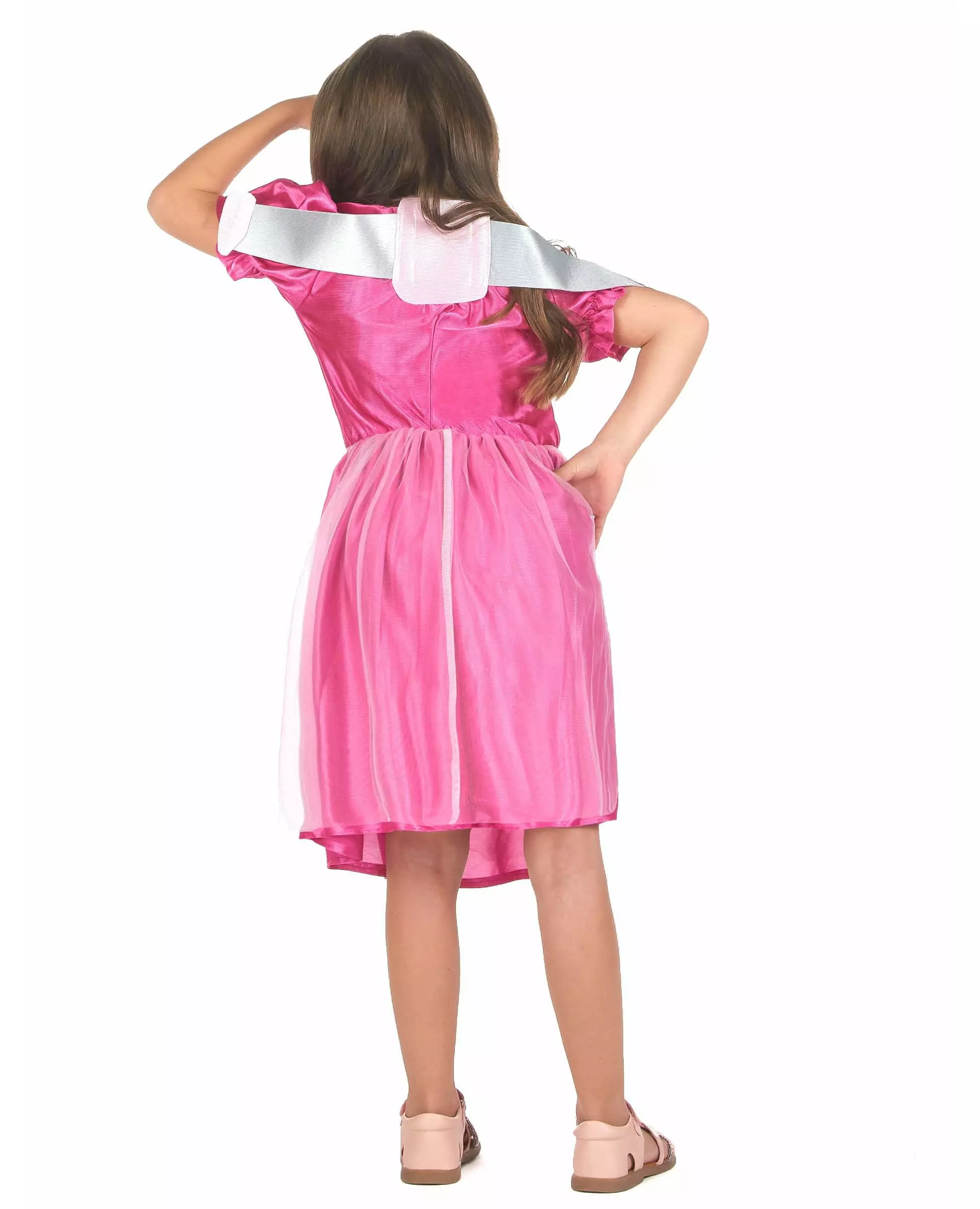 Sky aviation specialist! This pink aviator dog costume is for girls. It includes a dress and a headpiece. The short-sleeved dress is pink. It is printed with fake pockets, a fake central zipper, and a collar. It also has a thin, transparent veil that will be highlighted over the dress. It will be decorated with a small pair of white wings on the back. The headpiece represents the aviation goggles of the famous pilot from children's favorite cartoon! Play as your favorite heroine at your child's birthday party or at Carnival! Accessories included: Dress Headpiece Material: 100% Polyester Care: Hand wash