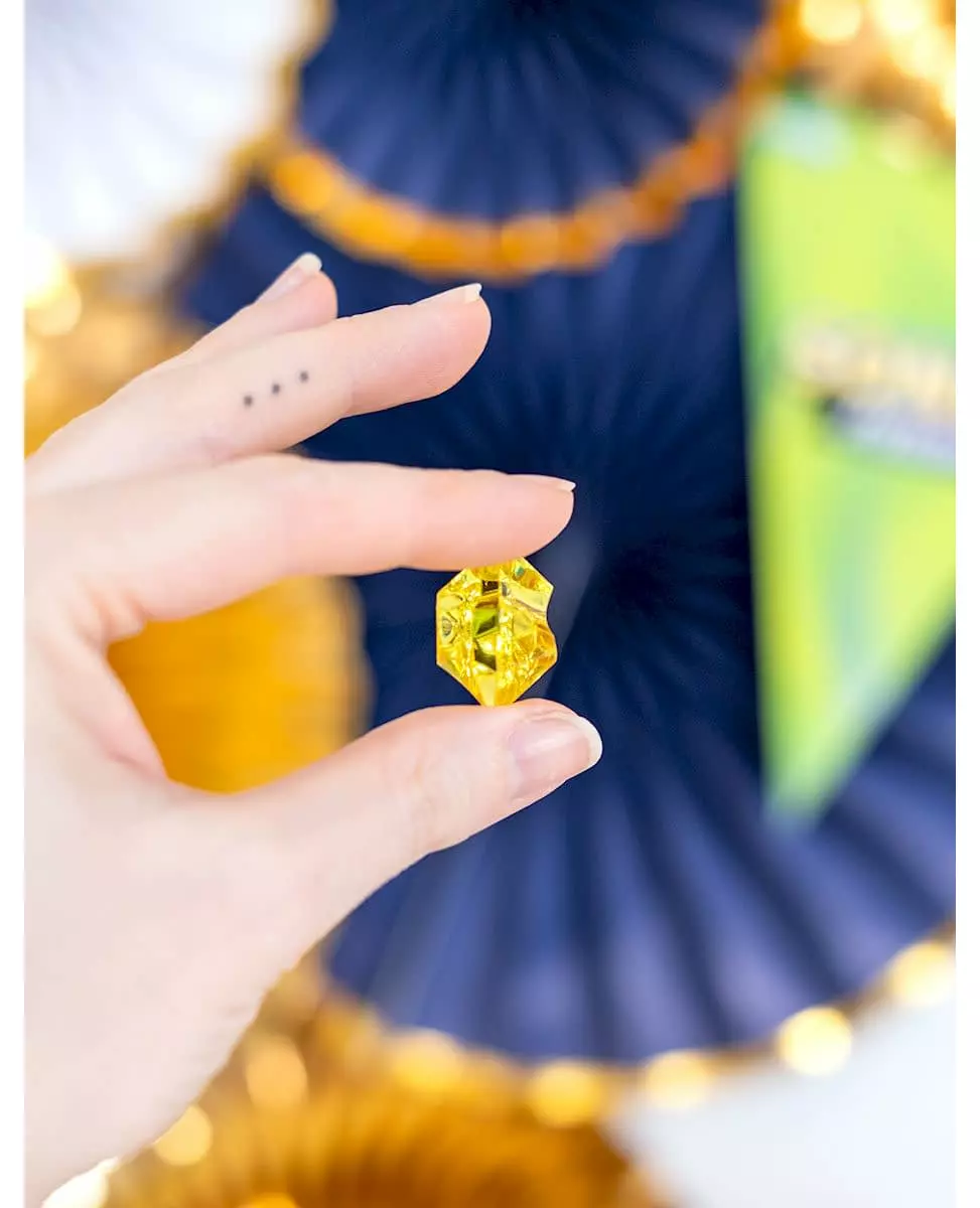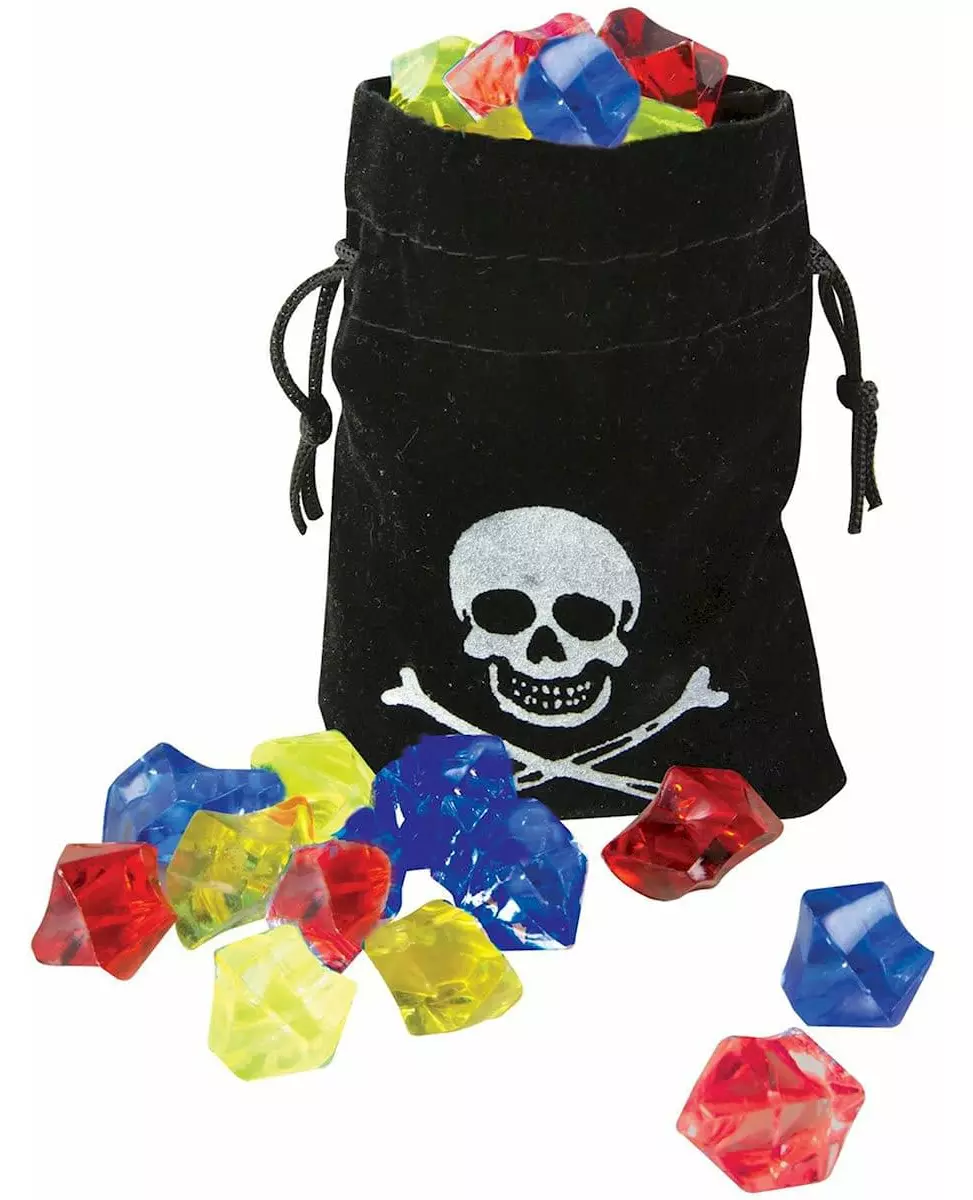 Safeguard your treasure! This pirate purse contains fake gemstones in different colors. These gemstones will be your pirate loot at Carnival or a pirate-themed party. You can also scatter them on your table to display your treasure!. Accessories included: Purse with fake gemstones Material: Polyester + plastic