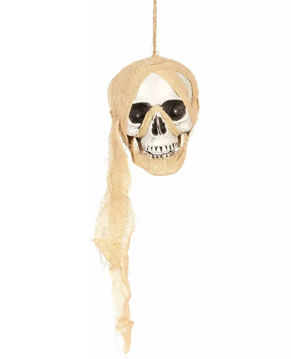 Bright and scary! This light-up hanging decoration measures 53 cm. It represents a pirate skull. The skull is white and the eyes are luminous. One eye is red and one eye is blue. The head is surrounded by a band that also allows it to be hung. Choose this light-up decoration to scare your guests even in the dark at your Halloween party! Accessories included: Light decoration Material: Plastic