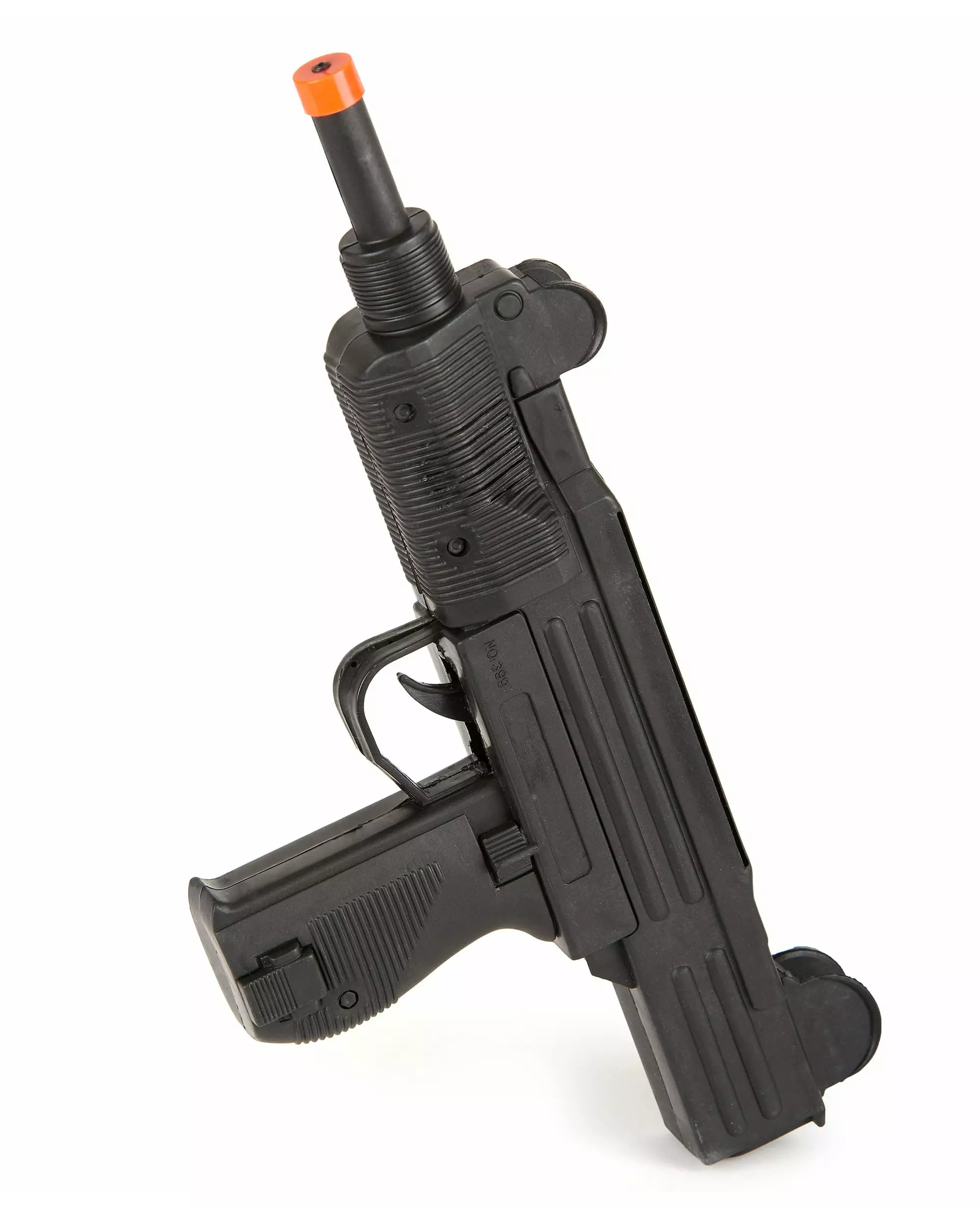37 cm Sound Submachine Gun! This 37 cm Uzi-type submachine gun is made of black plastic. It is a sound accessory that makes noise when you pull the trigger. This Uzi submachine gun is the perfect addition to your costume for Carnival or for your fancy dress parties. « © Copyright Widmann SRL ». Accessories included: Submachine gun Material: Plastic