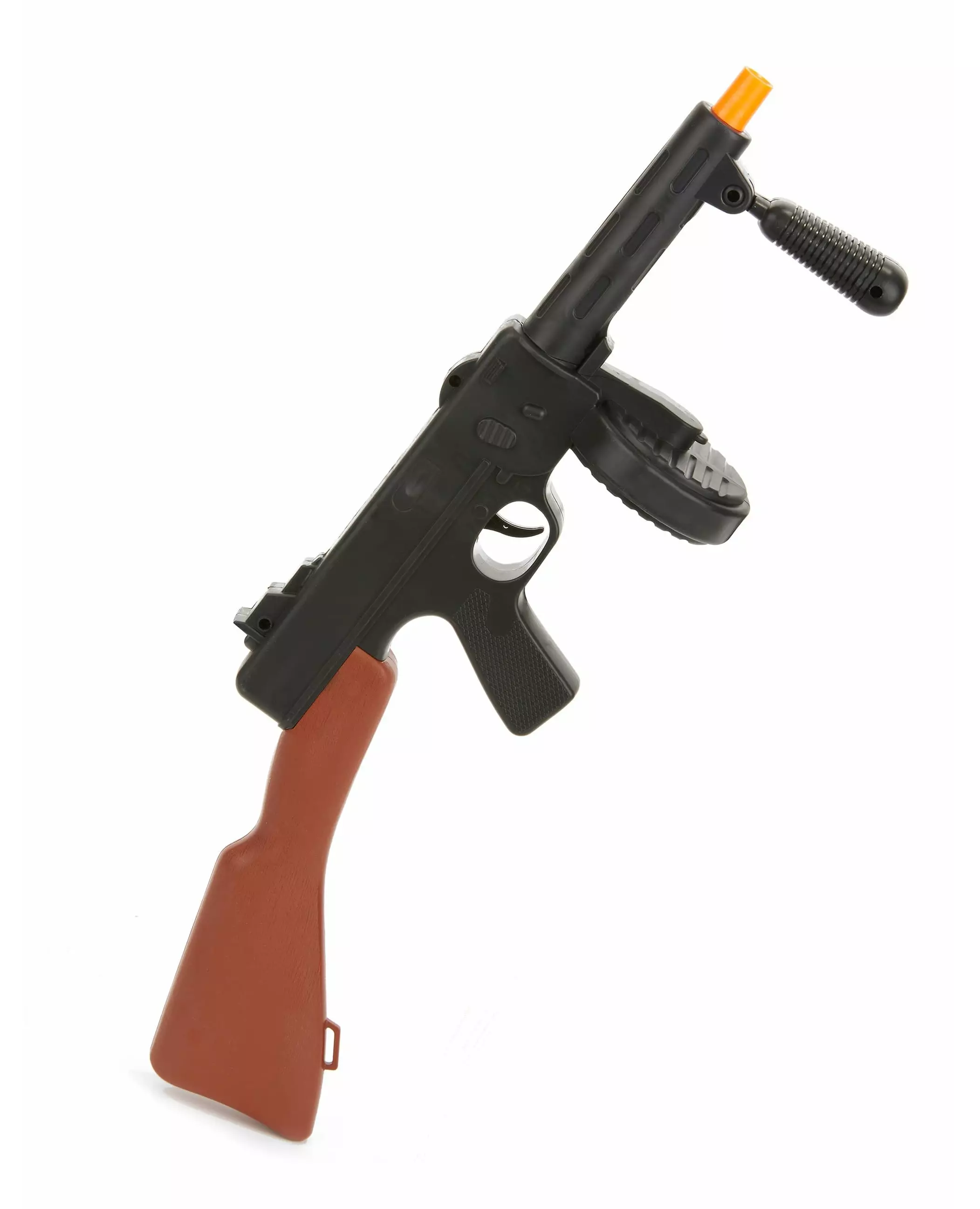 Gangster submachine gun! This plastic submachine gun measures 49cm and will be the essential accessory to complete your gangster costume! With its more than real noise, it will be perfect for your fancy dress or gangster-themed parties! © Copyright Widmann SRL. Accessories included: A submachine gun Material: Plastic
