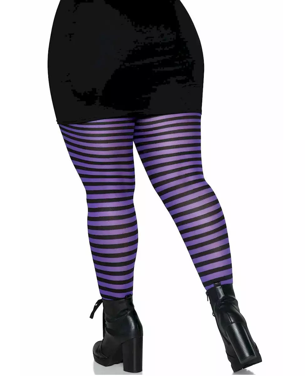 Complete your Halloween look with these tights! These plus size striped tights are for women. They are black and purple. These tights will be perfect to complete a witch and vampire costume or for a gothic look at a Halloween party. Accessories included: Tights Material: 50% Polyamide 50% Polyester Care: Hand wash