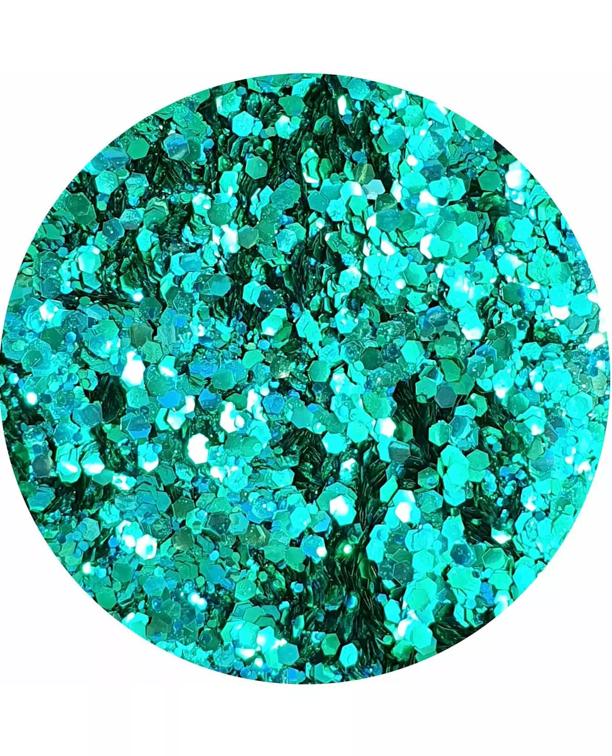 Shine bright for Carnival! This jar contains 5 ml of biodegradable Polysirène glitter from Si si la paillette. Highly biodegradable and 100% plastic-free, they are aqua green in color. Simply apply a balm to your skin using a brush and dip the brush into the glitter jar. Then carefully apply the glitter. This glitter can be used on the face, body, hair, and nails. Shine bright with this Polysirène glitter from Si si la paillette for Carnival or your New Year's Eve party! Ingredients: Rayon (regenerated cellulose), glycerin (plant derived), aqua, urea, styrene/acrylates copolymer, and depending on the colors blue 1 lake, CI 19140, pigment red 57.1, carbon black, titanium dioxide, ferric ammonium ferrocyanide, aluminum Ingredients: Rayon, Glycerine, Aqua, Urea, Styrene/Acrylates Copolymer, CI 19140, Blue 1 Lake, CI 77000
