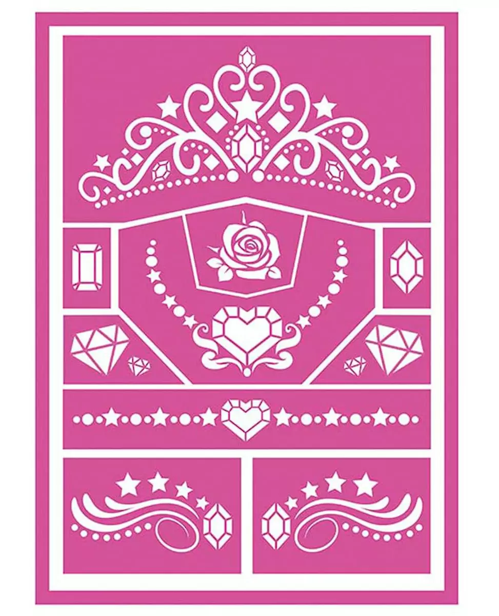 pretty princess for Carnival! This makeup stencil has several princess-like designs. You will find on the stencil a tiara, a princess necklace, a rose, and other designs allowing you to transform your child into a real princess. This stencil will be perfect for creating beautiful princess makeup for your child for Carnival! Ingredients: NC. Accessories included: 1 Sheet of stencils