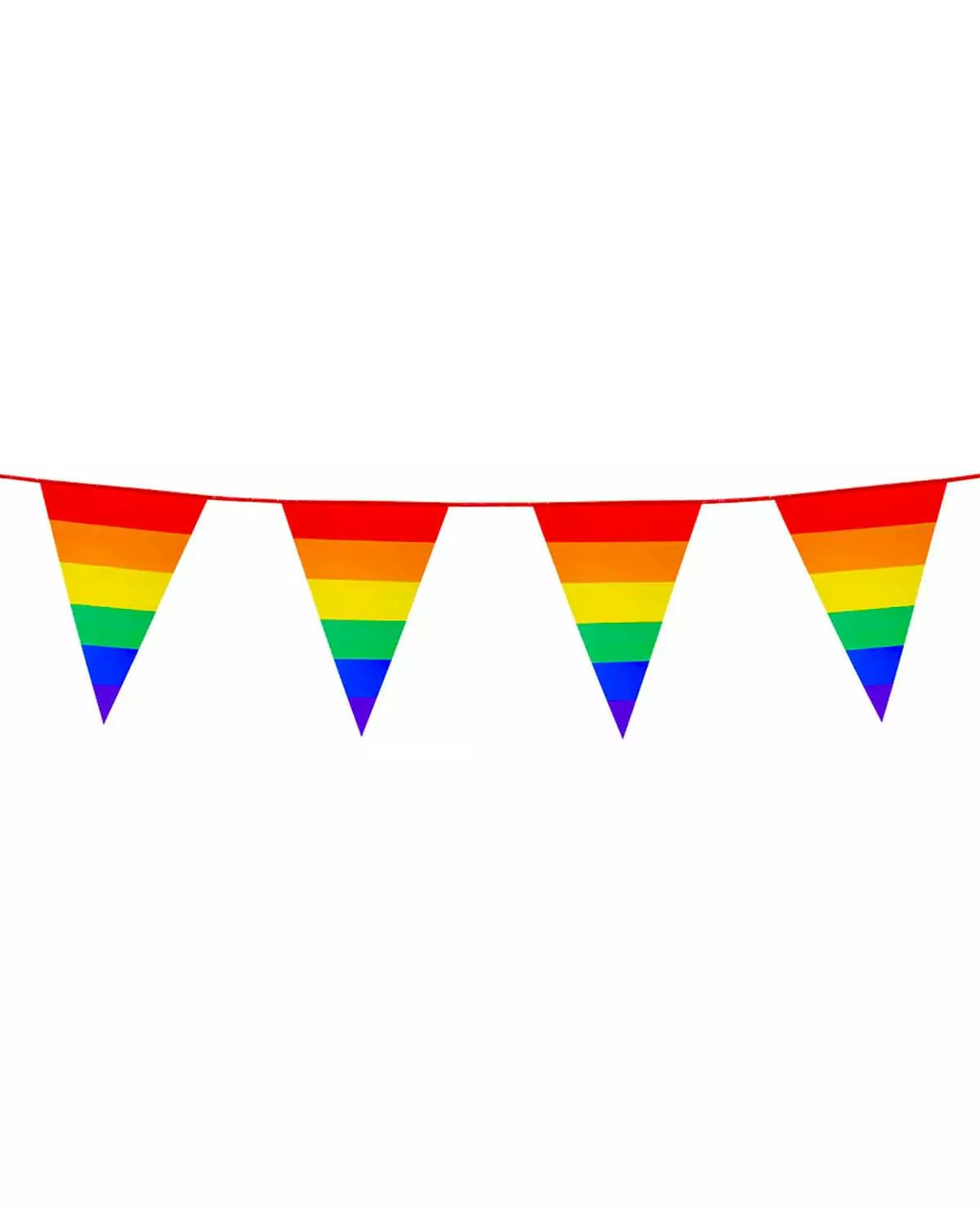 festive and colorful decoration to hang anywhere This 10 meter rainbow garland is made up of triangular pennants measuring approximately 30 x 20 cm each. Made of lightweight plastic, it can be easily attached indoors or outdoors, and brings a joyful and inclusive atmosphere to your decoration in the blink of an eye. Perfect for a Pride, a birthday or a garden party, this multicolored garland attracts the eye and spreads a beautiful energy. Accessories included: 1 Garland Material: Plastic