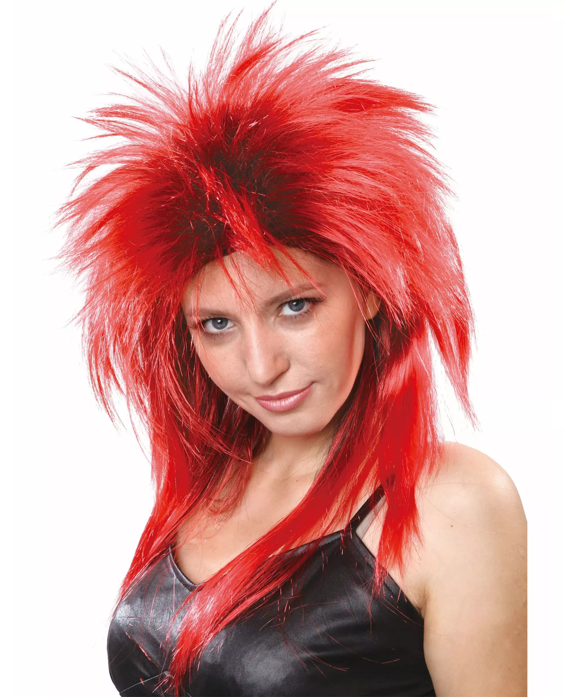 Adopt the messy rock look! This rock singer wig is for women. It is made of red and black synthetic hair. The latter are straight and measure approximately 60 cm. They are styled in a brush on top for a rock'n'roll effect. It will be easy to put on thanks to an elastic net. This wig will be perfect to complete your rock costume during your fancy dress parties. Accessories included: Wig Material: Synthetic 100% Polyester 100% Polyester