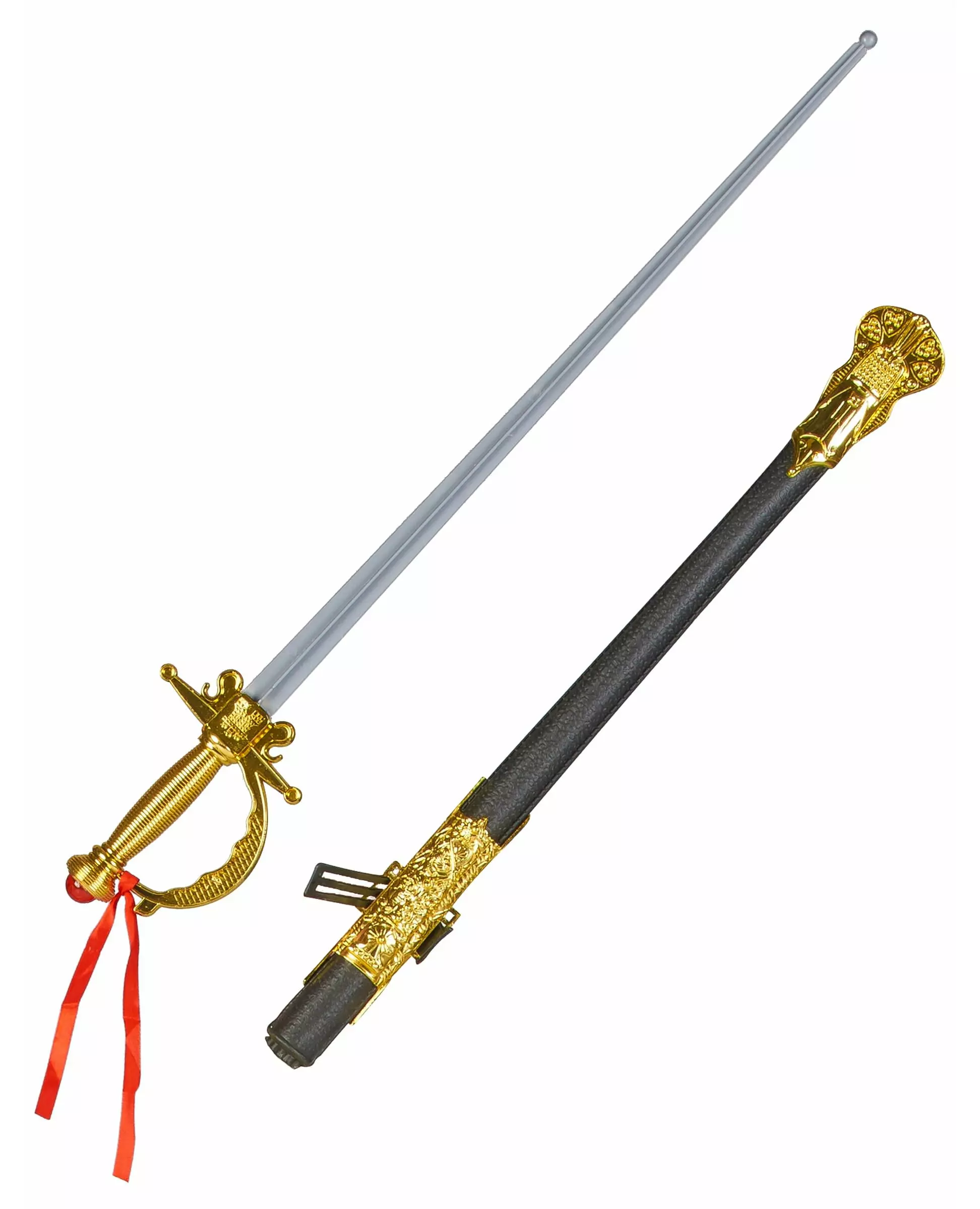On guard! This 66 cm long Republican-style saber is for adults. It is sold with its sheath. The whole thing is made of plastic with the gray blade, the golden handle and the black sheath. A loop on the sheath will allow you to attach it to a belt. This nice sword will be the ideal complement to a musketeer or Napoleon costume for Carnival or a show. Accessories included: Saber with sheath Material: Plastic