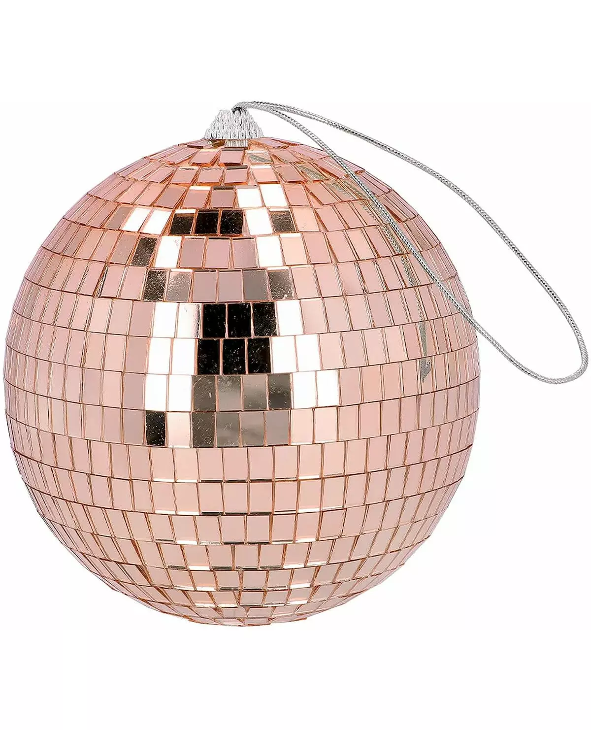 Add a touch of elegance and shine with this rose gold mirror ball. This mirror ball is pink and has a diameter of 15 cm. It hangs easily thanks to its silver wire. This mirror ball will be ideal for a disco party!. Accessories included: 1 mirror ball Material: 95% polystyrene, 5% silicon dioxide