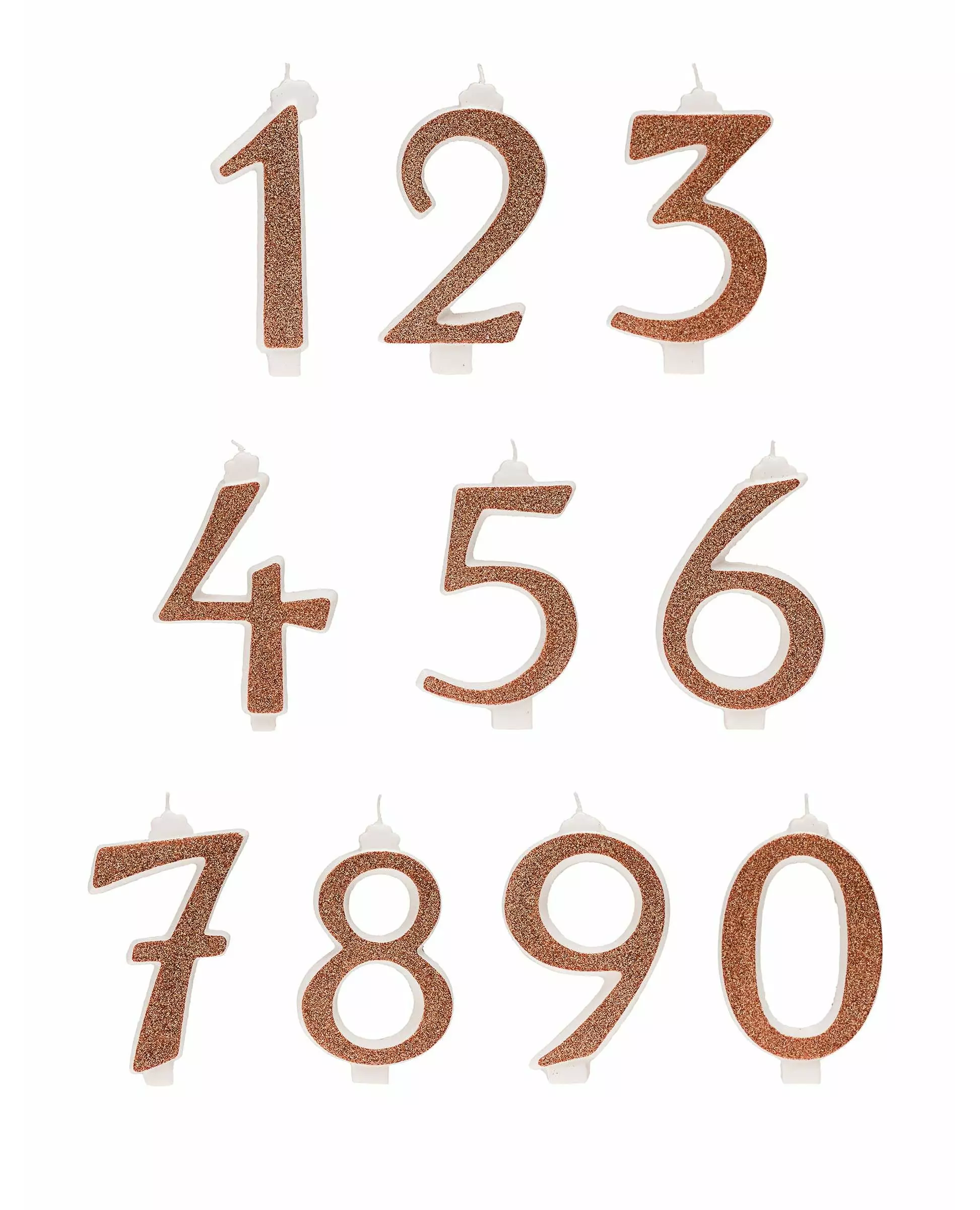 Decorate your cake with glitter! This rose gold glitter candle is shaped like a number. It measures approximately 13 cm high. You can choose from numbers 0 to 9. Place this candle on your birthday cake for a chic and girly effect!. Accessories included: 1 Candle