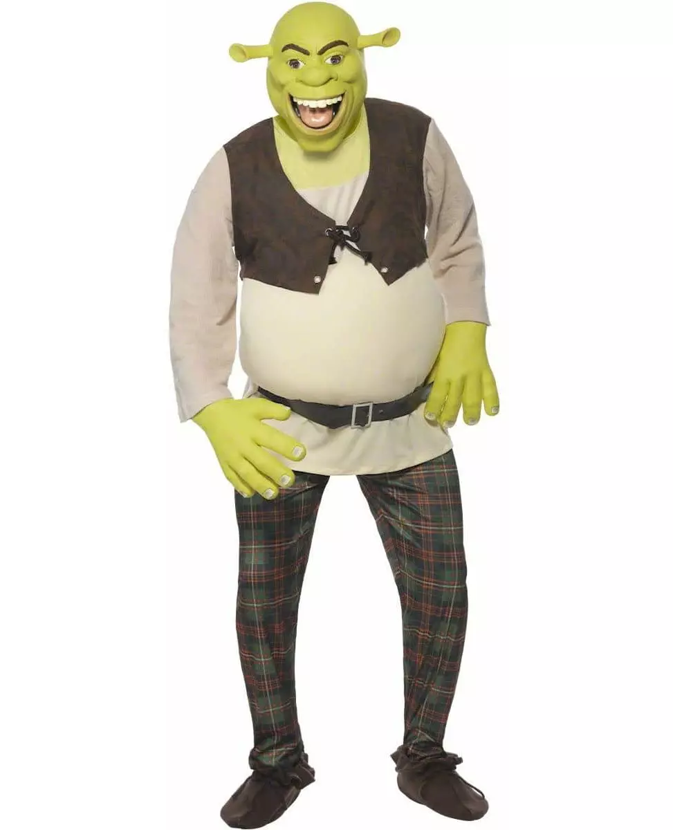 Complete costume! This Shrek costume for men consists of a top, pants, a mask and gloves (shoes not included). The top is quilted which highlights the character's rounded belly. A belt is attached directly to the tunic. The green and red checked pants are made of satin material. They are very elastic at the waist. A full mask and two soft latex gloves accessorize this outfit. This officially licensed Shrek™ costume will make you the most fantastic ogre at your themed parties. Accessories included: Top Pants Mask Gloves Material: 100% Polyester Care: Hand wash