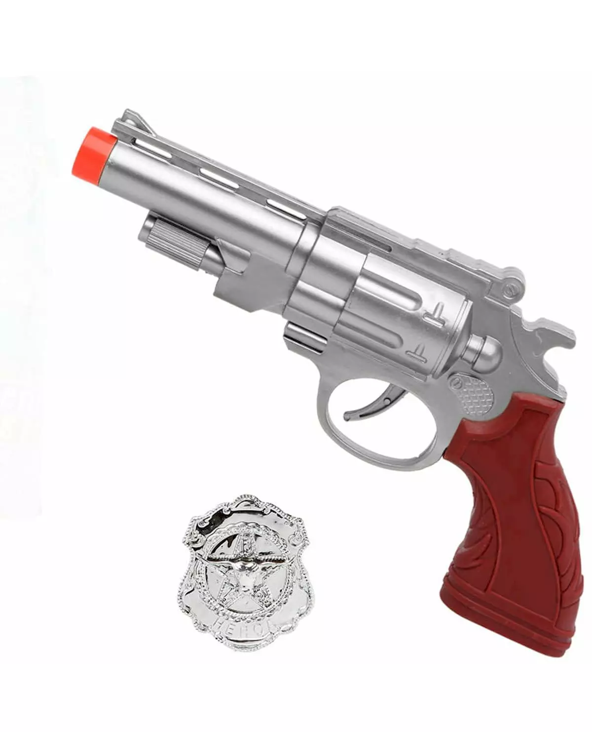 Transform yourself into a police officer with this pistol! This set consists of a pistol and a police badge. The pictolet is gray and brown, with an orange tip. It is completed with a silver badge. This set will be the perfect complement to your police officer costume for the Carnival. Accessories included: Pistol Badge Material: Plastic