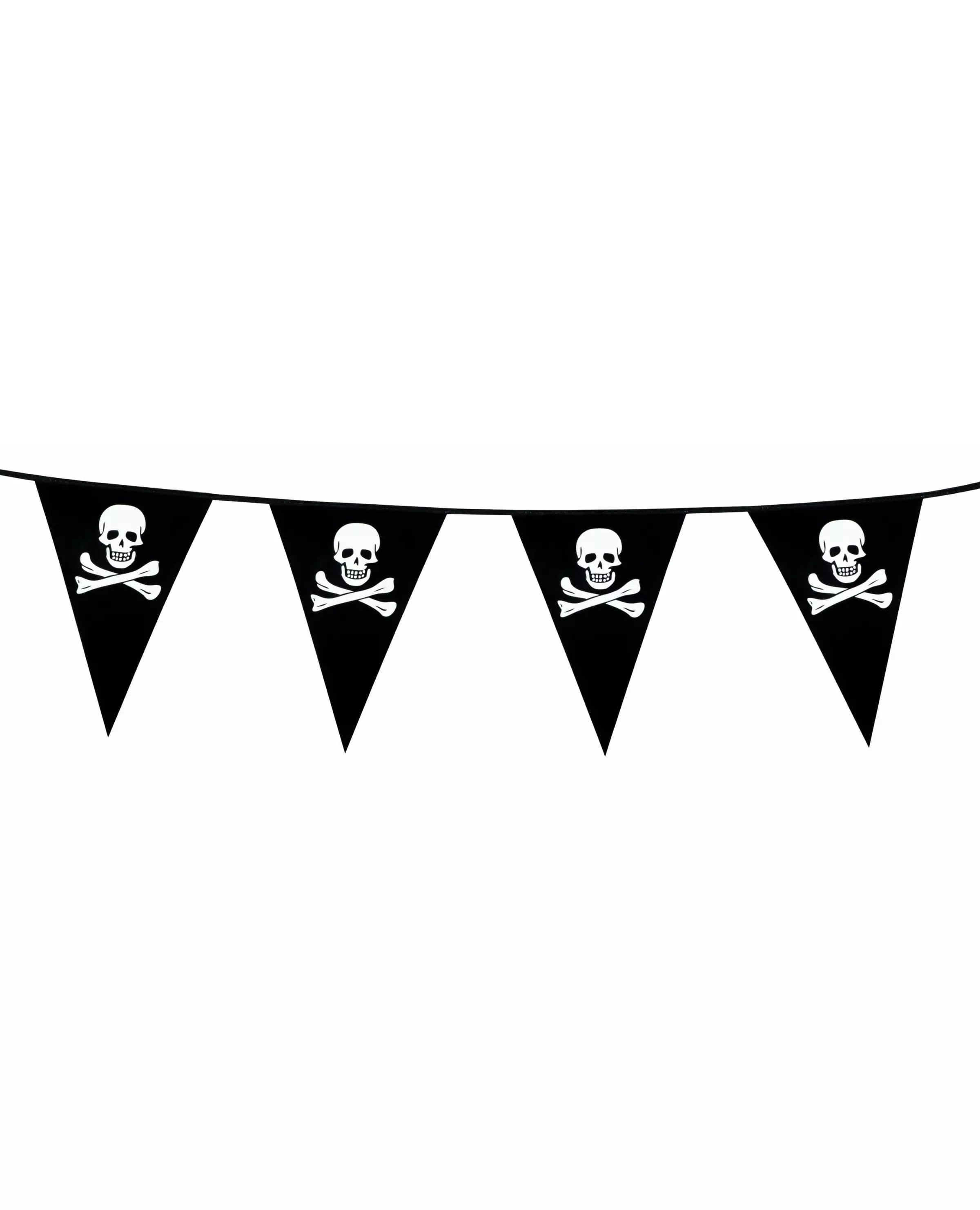 6 meters! This garland made up of several pennants measures approximately 6 m long. Each pennant is approximately 30 cm high and 20 cm wide at the base. This element is ideal for decorating your room during a Pirate-themed event. Accessories included: Garland Material: Plastic