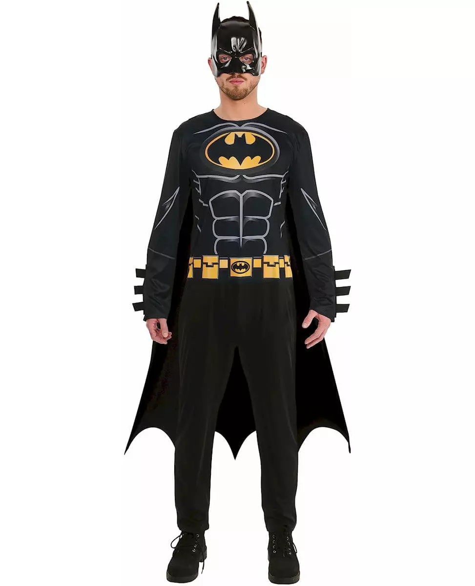 Become Gotham's caped vigilante! This Batman ™ costume includes a jumpsuit, cape, and hood for an instant transformation into a hero of the night. The black jumpsuit, faithful to Batman™'s classic appearance, is printed with details reminiscent of the vigilante's powerful muscles, as well as the famous bat on the chest. It's ideal for hunting down villains at your costume parties. The flowing cape, emblematic of the Dark Knight, attaches easily and gives you the mysterious look that makes Batman™ such a feared hero that is admired. It adds a touch of drama to every move, ensuring you make a grand entrance. Finally, the black mask, with its bat ears, covers the upper part of the face and completes the Batman™ appearance. Fitted and comfortable, it helps keep your identity secret while reinforcing your resemblance to this nocturnal protector. Perfect for Halloween, conventions, or any other themed event, this Batman™ costume will allow you to fight crime in style and bring justice to the streets, while embodying one of the most iconic heroes of the DC Comics universe!. Accessories included: 1 Jumpsuit 1 cape 1 balaclava Material: 100% polyester Care: Hand wash