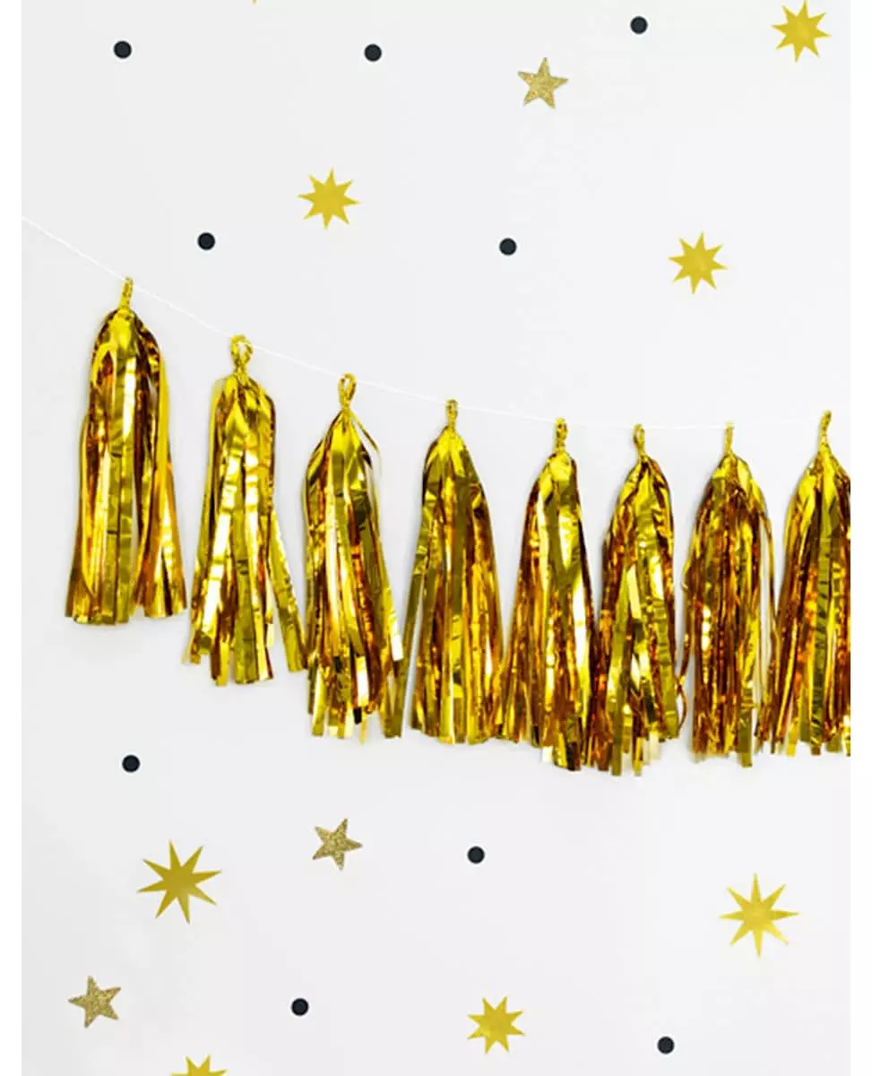 Ideal for a trendy decor! This tassel garland is made up of 12 gold-colored pompoms made of flame-retardant material. This garland is for you to make yourself. Once the pompoms are created, all you have to do is thread them onto the ribbon provided to create a garland. This ribbon measures approximately 1.5 m in length. This tassel garland will be perfect to complete your gold decoration for the end-of-year celebrations! Accessories included: 1 Garland