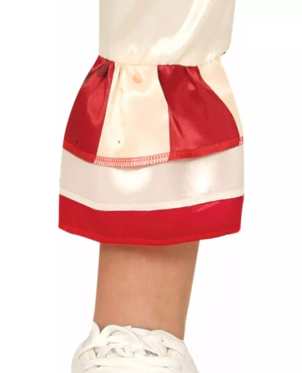 scary clown for Halloween! This terrifying clown costume for teenage girls consists of a top, pants, and a collar. The outfit represents a clown costume with its red and white colors. The cream-colored pants are decorated with red and white striped ruffles at the ankles, echoing the rest of the outfit. The long-sleeved top is flared at the waist and decorated with red and white stripes. It is decorated with fake blood splatters and red pom-poms, reinforcing the sinister look of the costume. A white collar completes the ensemble, adding a final spooky touch. Perfect for a Halloween party, this evil clown costume is sure to send shivers down the spines of anyone who crosses its path! Accessories included: 1 top 1 pair of pants 1 collar Material: 100% polyester
