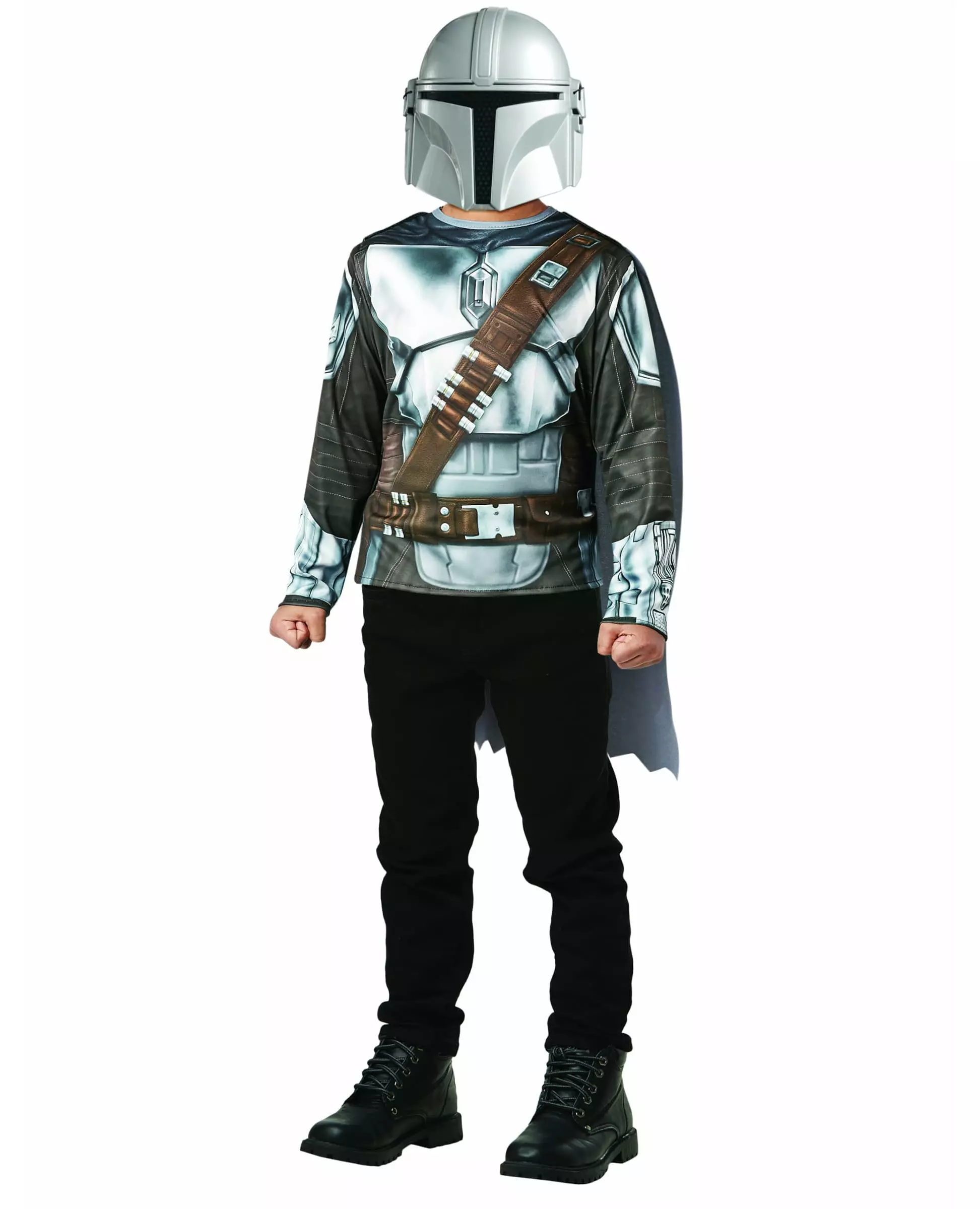 Become the Mandalorian™ for Carnival! This The Mandalorian™ kit is for children and consists of a top, a cape and a mask. The top has long sleeves and represents the armor of the famous bounty hunter. The cape is gray and has Velcro fasteners to hold it on the top. The half-mask is made of PVC and has an elastic band for a good fit. It represents the helmet of the Mandalorian™ Your child will perfectly embody the famous Mandalorian™ for Carnival or a TV series-themed party! Material Polyester and PVC Care and washing Hand wash Accessories included - Top - Mask - Cape Safety Warning! Not suitable for children under 3 years. Contains small parts, choking hazard.
