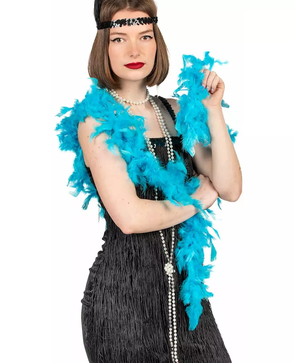 Wow! This turquoise blue feather boa measures approximately 190 cm. This adult accessory will be perfect to complete your outfit for carnival or a theme party. Accessories included: Boa Care: Hand wash