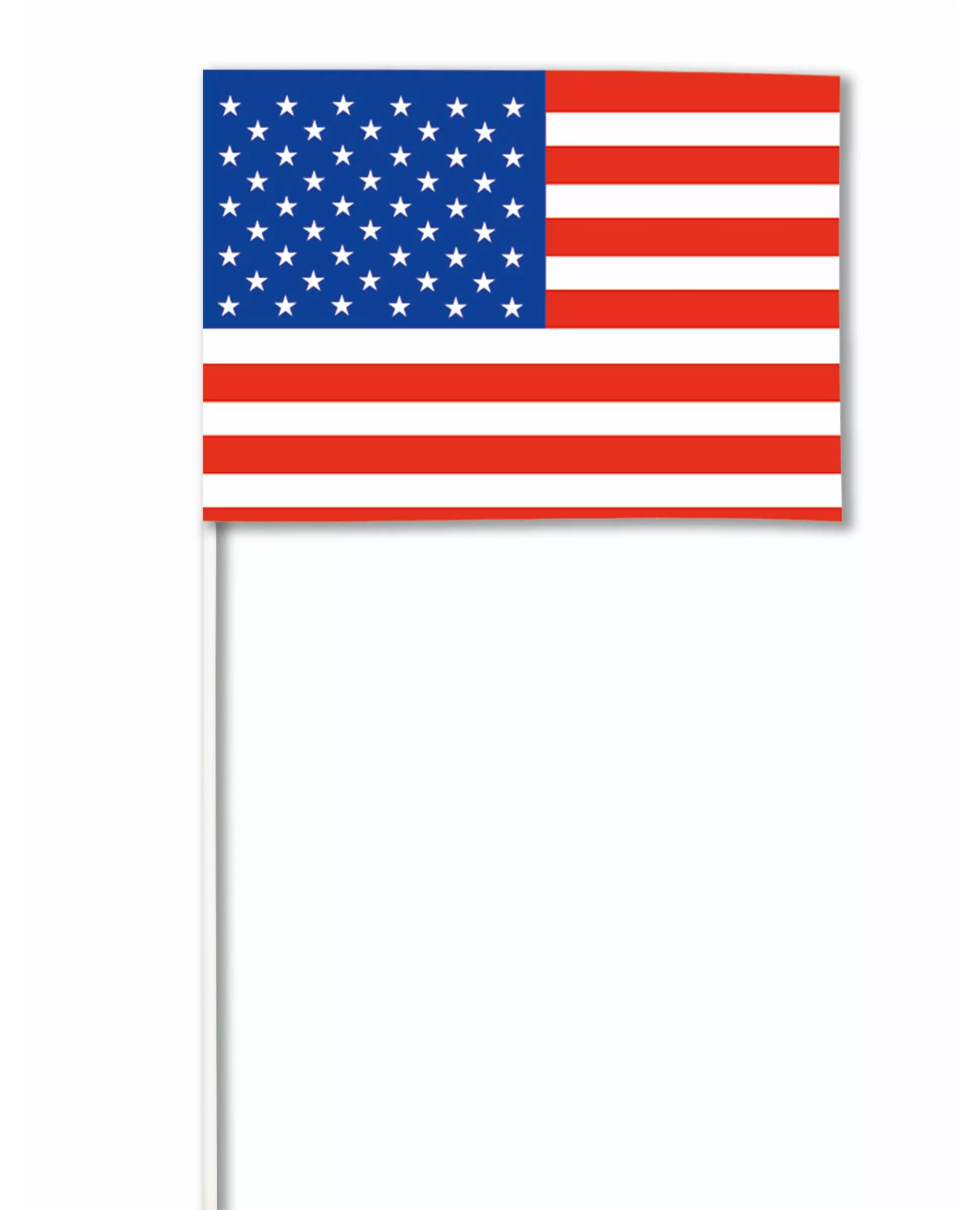 flag of the USA! This paper flag measures approximately 14 x 21 cm. It represents the flag of the United States. This small flag is attached to a white stick so it can be easily held in the hand. This flag will be ideal for supporting your favorite country at a festive or sporting event!. Accessories included: 1 Flag Material: Paper