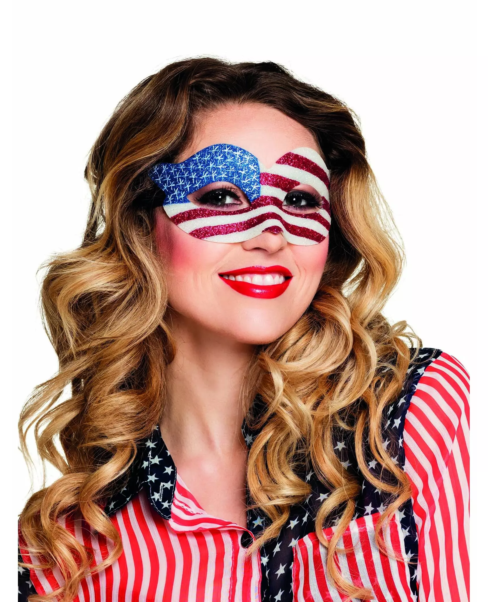 To remain anonymous... This plastic wolf for women represents the American flag with its white and red stripes and white stars on a blue background. It is entirely glittery. The wolf is held behind the head with a black elastic band. This accessory will be perfect for remaining anonymous at your American-themed party! Accessories included: Wolf, Material: Plastic,