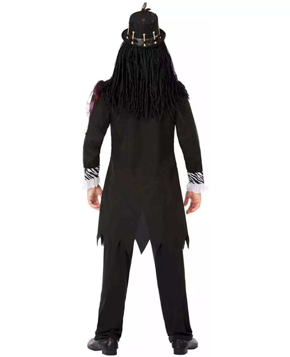 Play as a voodoo sorcerer! This adult costume consists of a long-sleeved top and pants (hat, mask, and scepter not included). The long-sleeved top will give the impression that you are wearing a shirt with a jacket over it. It has different colors and small skulls as buttons. The comfortable pants are black and have a skeleton print. The back of this costume is completely black. This voodoo sorcerer costume for men will be perfect for Halloween!. Accessories included: Top Pants Material: 100% polyester