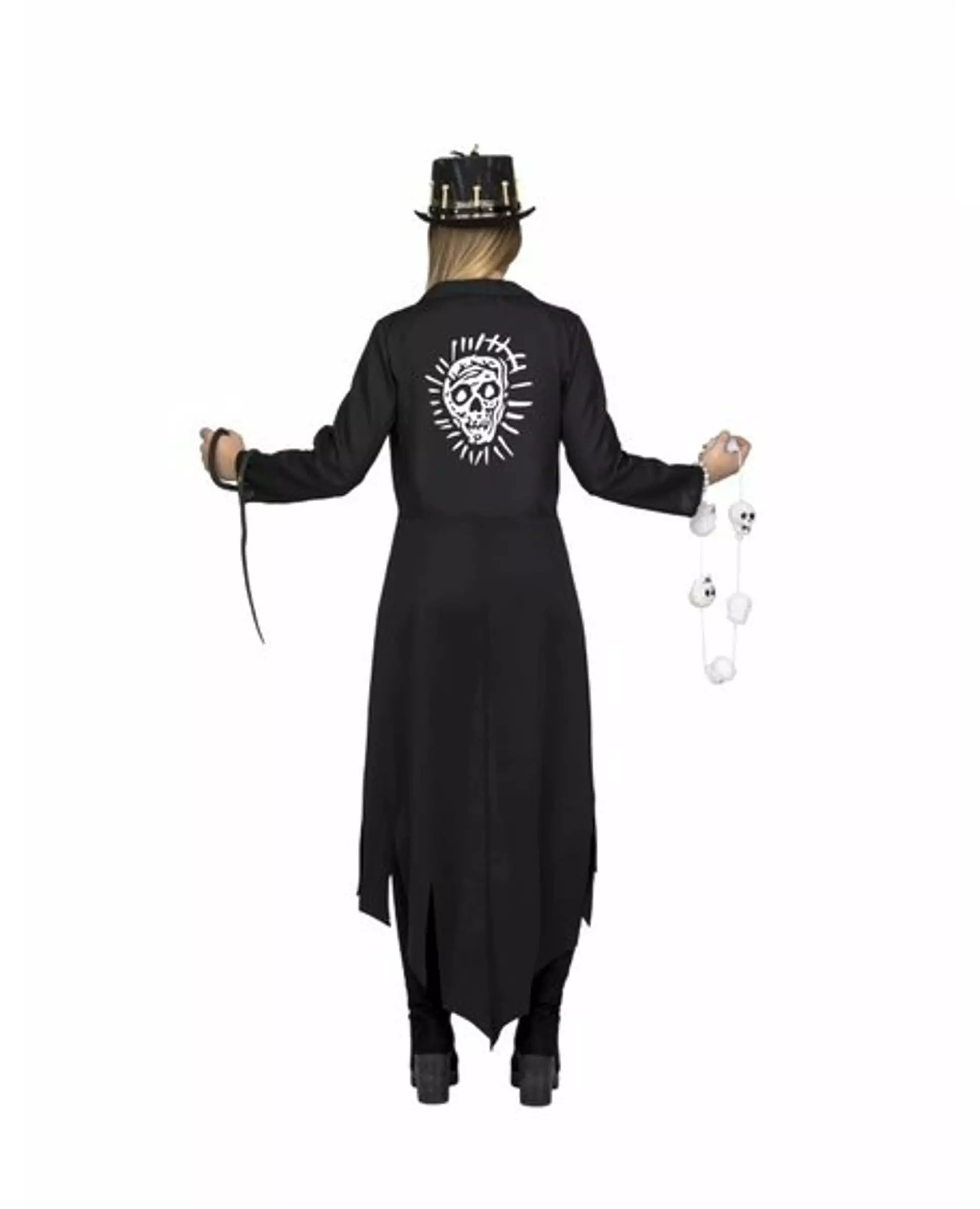 Become a sublime voodoo witch for Halloween! This voodoo witch costume is composed of a jacket with vest, a necklace, a snake, a bracelet, and a pendant. The long jacket has a vest sewn directly onto it. A necklace with bones, a bracelet with skulls, a snake, and a pendant will complete this outfit. Original and elegant at the same time, this costume will be perfect to impress your friends for Halloween, or for any other festive event!. Accessories included: Jacket with vest Necklace Bracelet Snake Pendant Material: 100% polyester Care: Hand wash