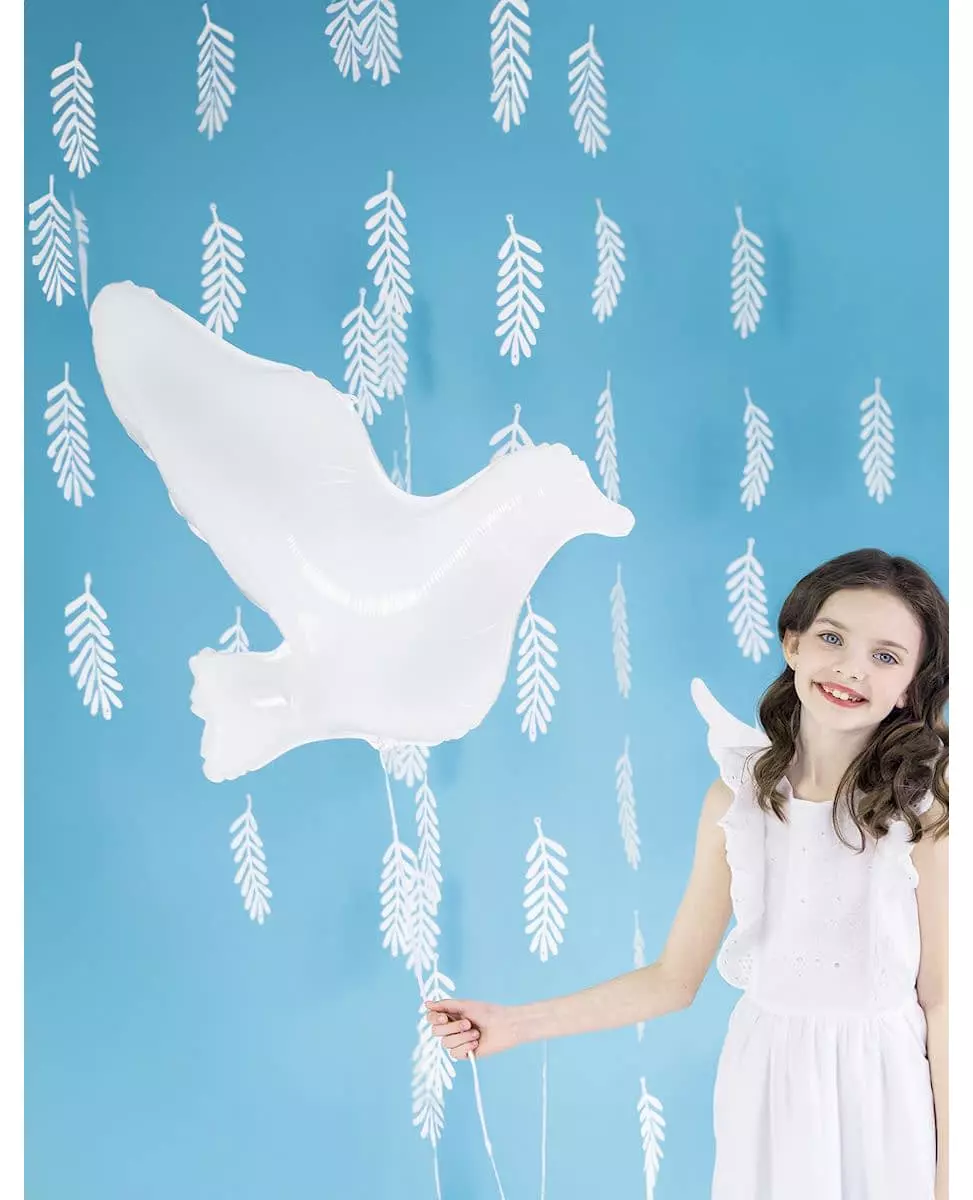 Let the doves fly for your wedding! This foil balloon represents a white dove. It measures approximately 77 x 66 cm. You can inflate it with air or helium to make it fly. This balloon will be perfect to complete your white decoration for a wedding. Accessories included: 1 Balloon Material: Aluminum