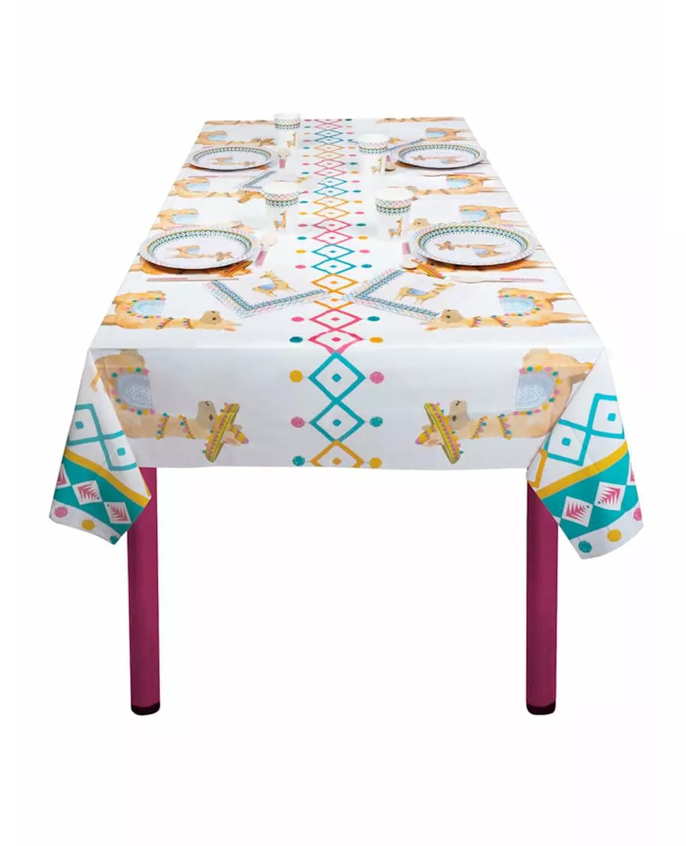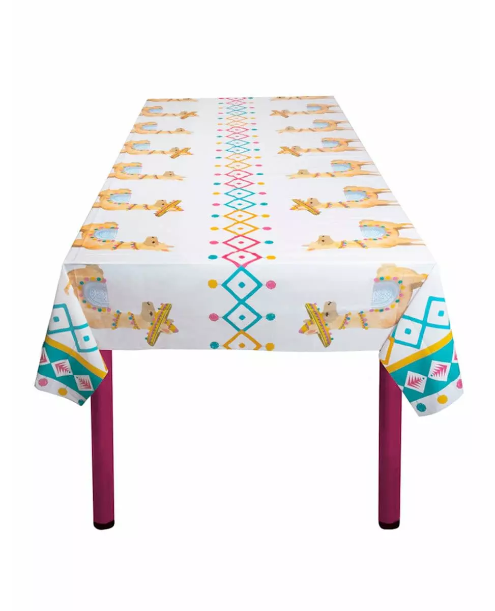 A tablecloth for a Llama birthday! This plastic tablecloth measures approximately 130 x 180 cm. This white tablecloth is decorated with llamas and blue, yellow and pink ethnic patterns. This tablecloth will be ideal for enhancing your table at your daughter's llama birthday party, for example!. Accessories included: 1 Tablecloth Material: Plastic