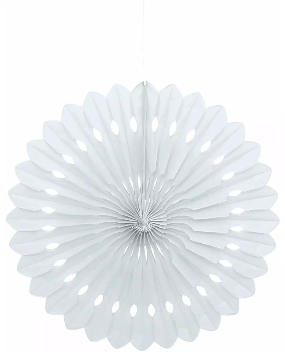For a chic and bright decoration! This hanging rosette is made of white paper. It measures approximately 40 cm in diameter. This hanging decoration will be perfect to complete your room decoration for Valentine's Day, a wedding or even a birthday. Unique party branding. Accessories included: 1 Rosette Material: Tissue paper