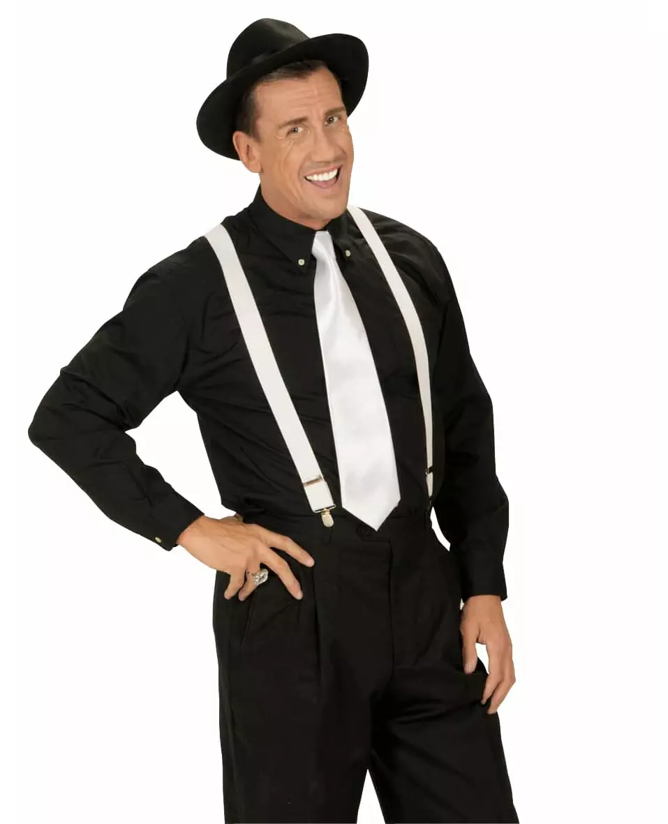 Elegant! This white tie is for adults. It attaches with an elastic band and will be ideal for completing your gangster costume at Charleston or 20s/30s themed fancy dress parties. « © Copyright Widmann SRL ».. Accessories included: Tie Material: Polyester Care: Hand wash