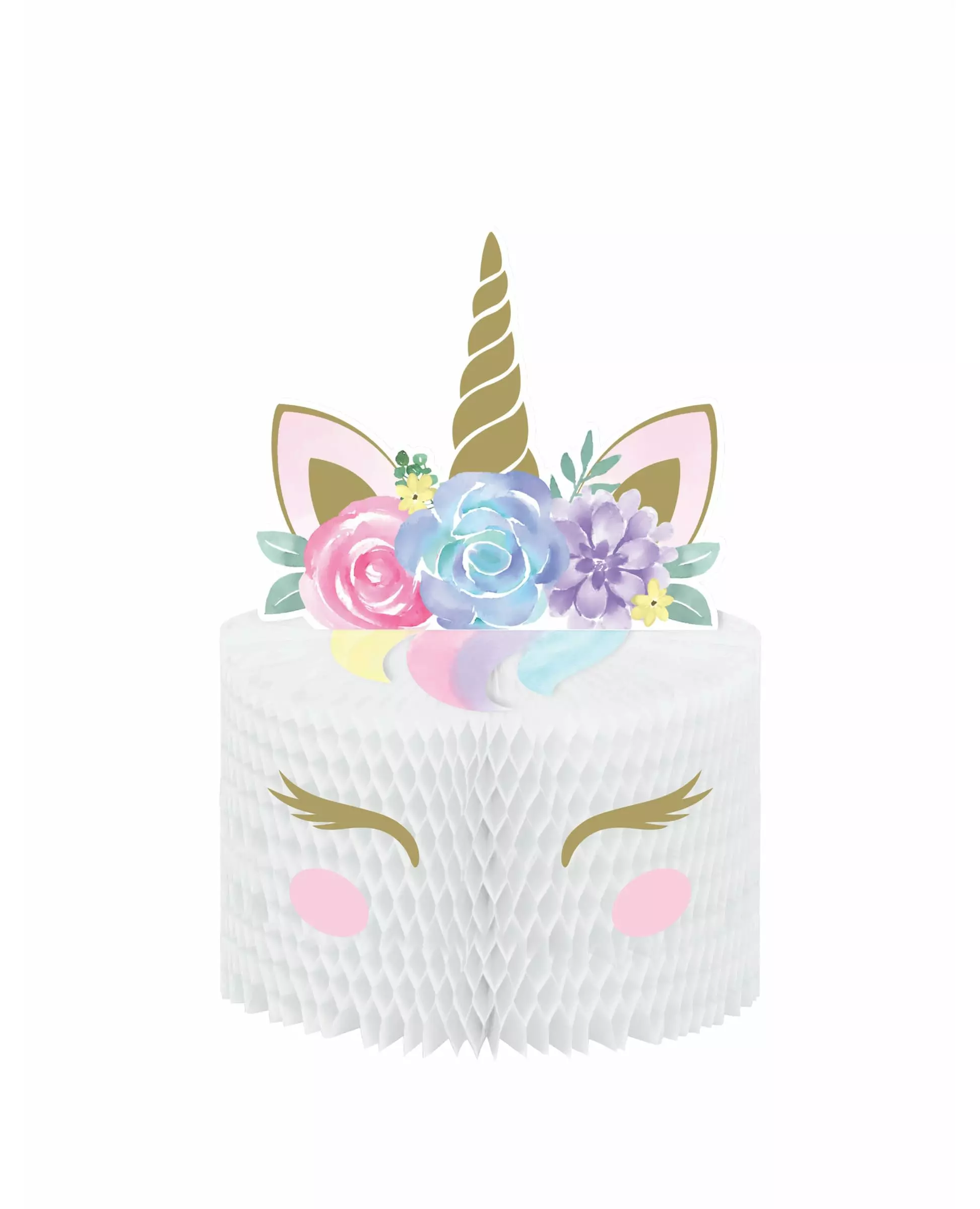 White fairy unicorn honeycomb paper centerpiece 19 x 30 cm For a pastel and magical table. This centerpiece is made of honeycomb paper.