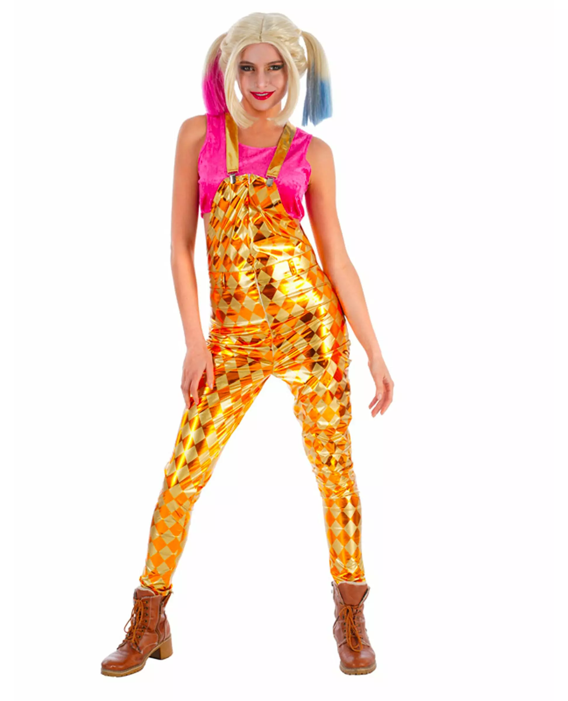 Embody a famous movie character This diamond overalls costume is for women. It includes one pair of overalls, sold separately. The overalls are yellow/gold in color. Diamonds decorate the entire set of these overalls. They close with straps with metal clips. These pretty overalls will be perfect for embodying a famous female character from a movie or comic book for Halloween or for a character-themed costume party. Material: 100% POLYESTER. Accessories included: Overalls Care: Hand wash