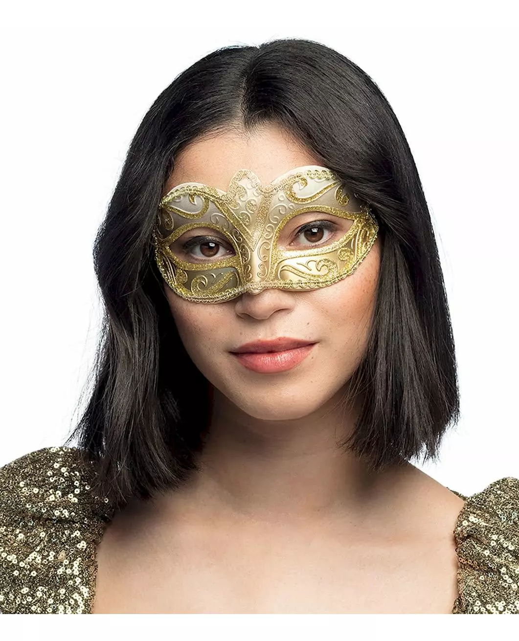 Women's Venetian Gold Sequined Eye Mask includes: Eye mask.