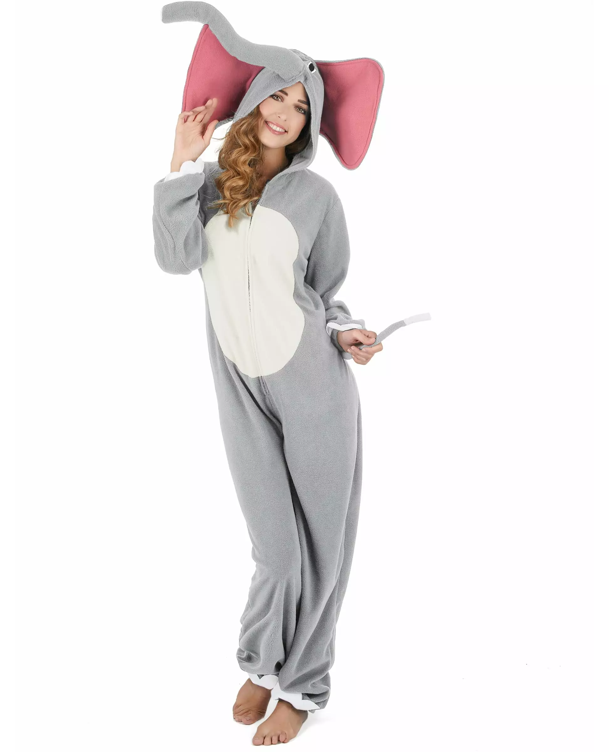 The most beautiful elephant This gray elephant costume for women is a jumpsuit with a hood. The gray jumpsuit is white on the stomach. It closes and opens at the front with a zipper. The hood represents the elephant's head with, at the top, its large pink ears inside. A large gray trunk is also present on the front of the hood. Finally, a gray and white tail is sewn on the back. A grey elephant costume perfect for Carnival or an animal-themed party. Accessories included: Jumpsuit with hood Material: 100% polyester Care: Hand wash