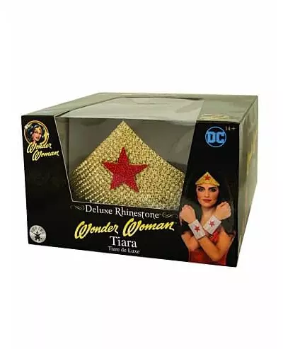 Transform into a deluxe Wonder Woman with this tiara This Wonder Woman™ tiara is officially licensed. It is covered in rhinestones. They are gold in color, and form a red star in the middle. This deluxe tiara will be perfect to complete your Wonder Woman costume for Carnival or a superhero-themed party. Accessories included: Tiara