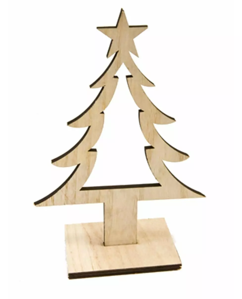A pretty wooden decoration! This wooden decoration is shaped like a fir tree and measures approximately 25 cm in height. The fir tree is openwork in the center and is decorated with a star at the top. It has a wooden base. This magnificent fir tree will perfectly dress your Christmas table!. Accessories included: 1 Fir tree Material: Wood
