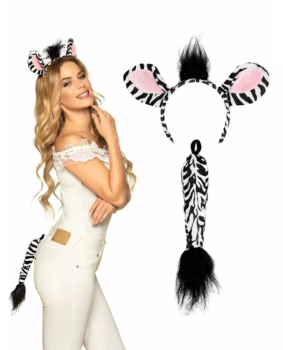 A real zebra! This women's zebra set includes a headband representing the animal's ears and a tail that slips around your belt buckle. This accessory will be perfect for your costume or theme parties.